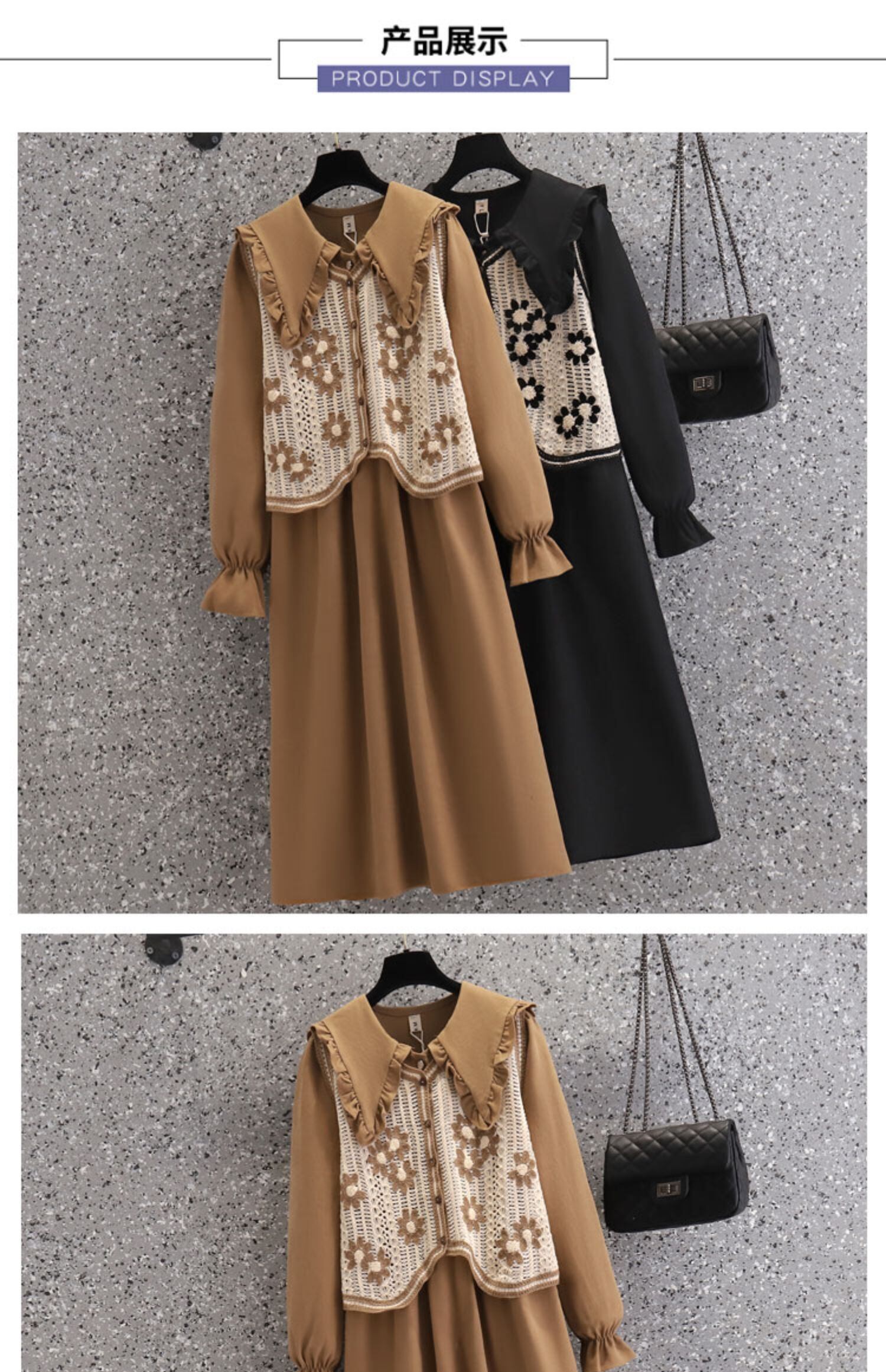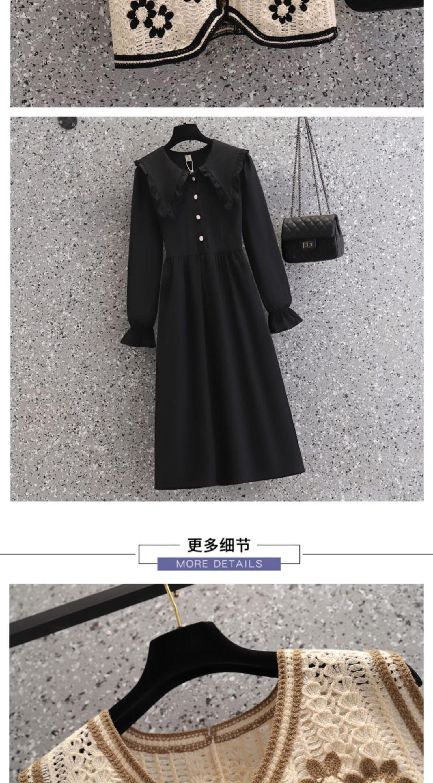 大きいサイズの婦人服 2022 ファットシスター秋の新しいベストフレンチレトロウエストスリムドレス 2 点セット 大きめサイズ オータム 秋物 8884124045283209