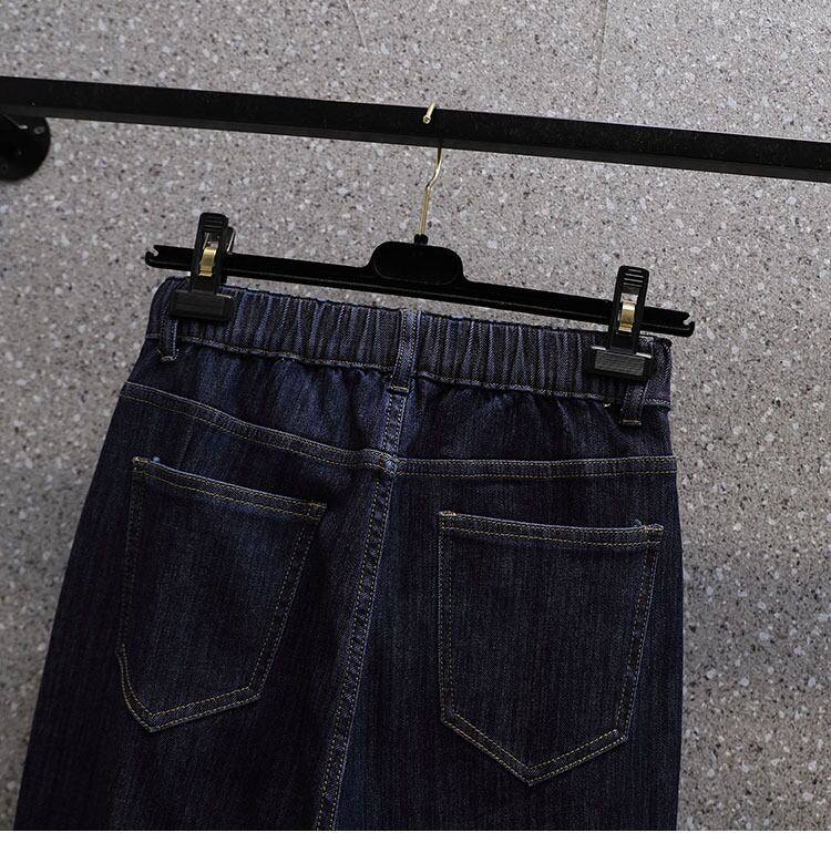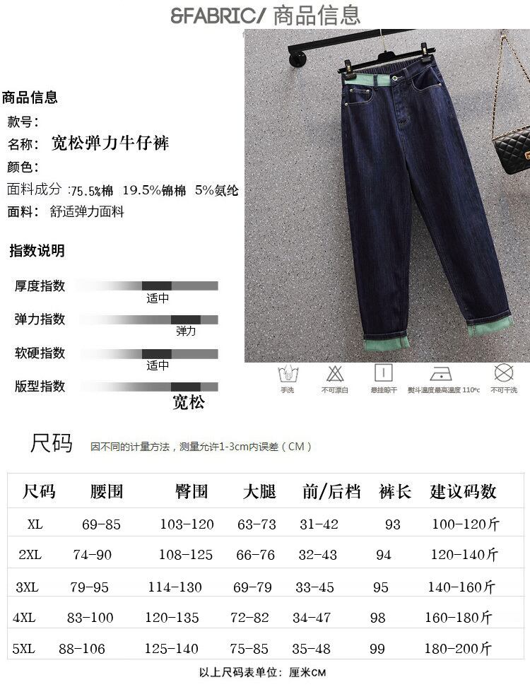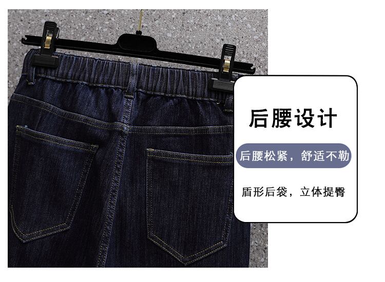 大きいサイズの女性のルーズで薄いファッション パパ パンツ 2022 年秋新しい弾性ハイ ウエスト ウエスタン スタイル ジーンズ ハイウェスト エラスティック 伸縮 大きめサイズ 8884146866860517