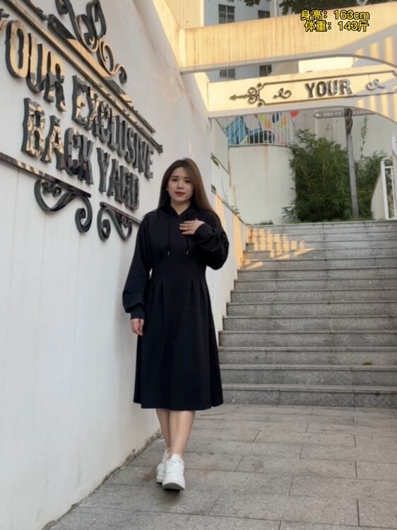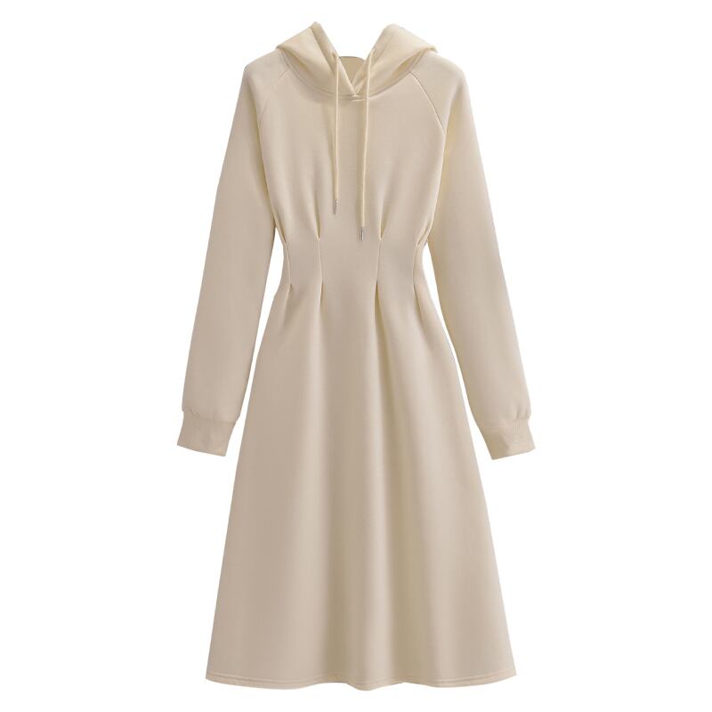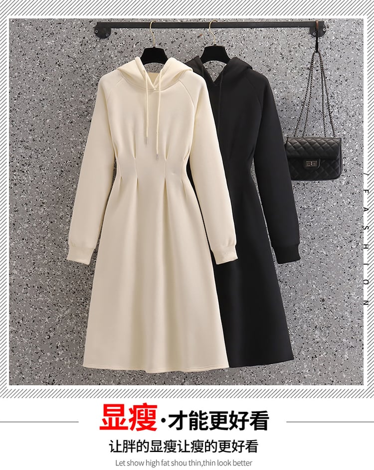 プラスサイズの女性の 2022 秋の新しいファットシスターバージョン無地ルーズウエストと薄い巾着フード付きドレス 大きめサイズ オータム 秋物 ソリッドカラー 8884189373849430