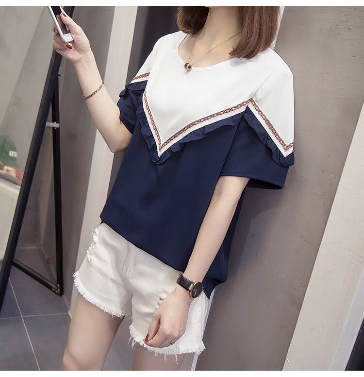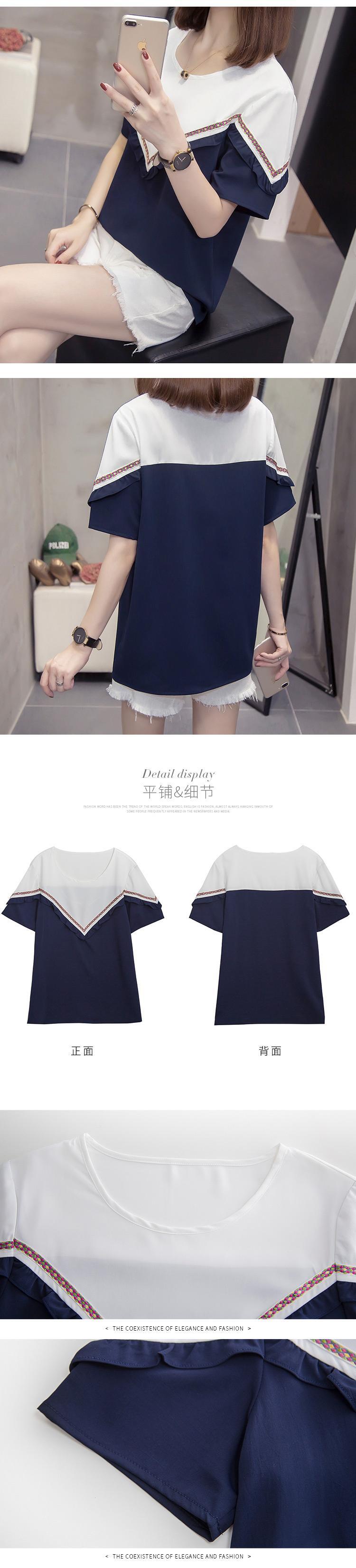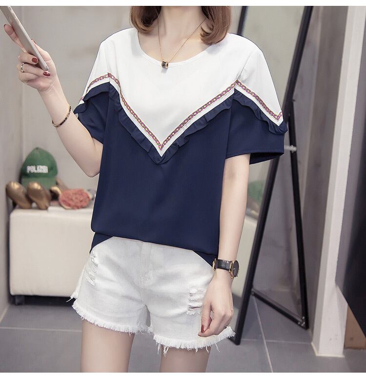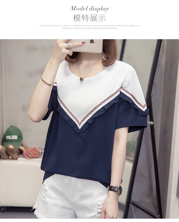 プラスサイズの婦人服 2022 ファットシスター夏の新しいカジュアルオールマッチステッチ V ネックトップファッション薄い半袖 tシャツ 大きめサイズ サマー 夏物 Vネック 888413383349294