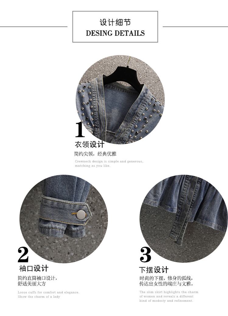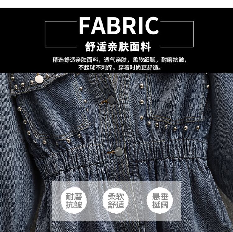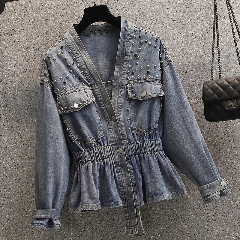 大きいサイズの婦人服 2022 秋の新しいファットシスターのウエストは薄いファッションビーズ気質オールマッチデニムジャケット女性 大きめサイズ オータム 秋物 8884134736929345
