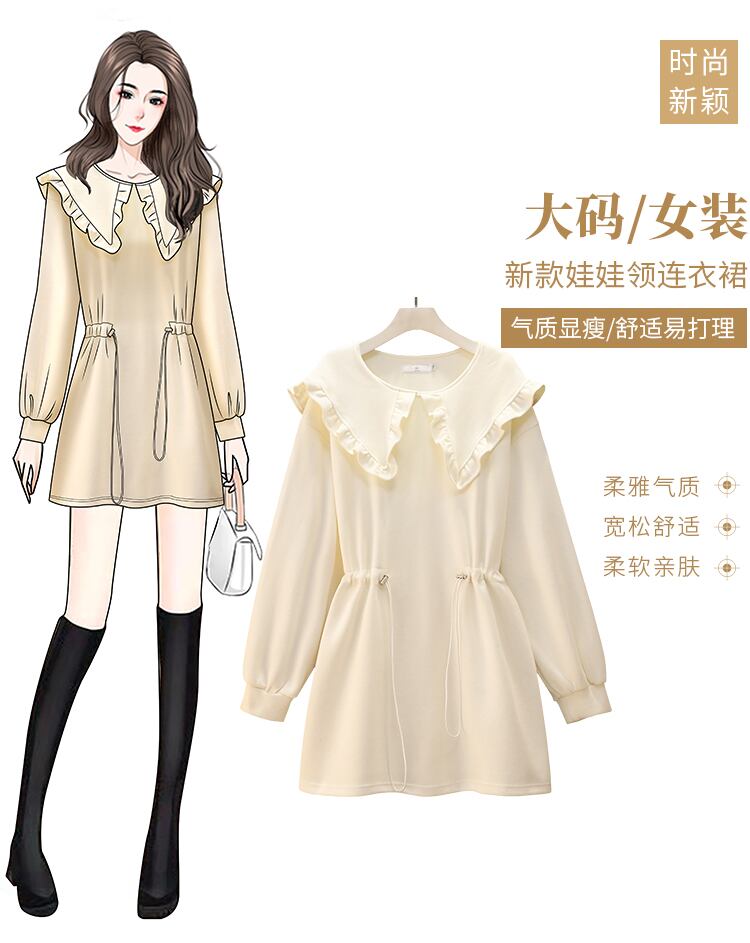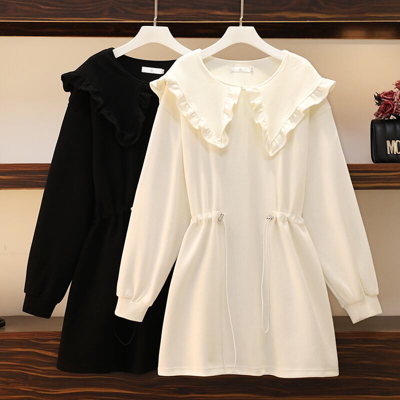 プラスサイズの婦人服 2022 ファットシスター秋の新ファッション人形の襟のセーターミドル丈ルーズ長袖トップ ロング 大きめサイズ オータム 秋物 8884150871641291