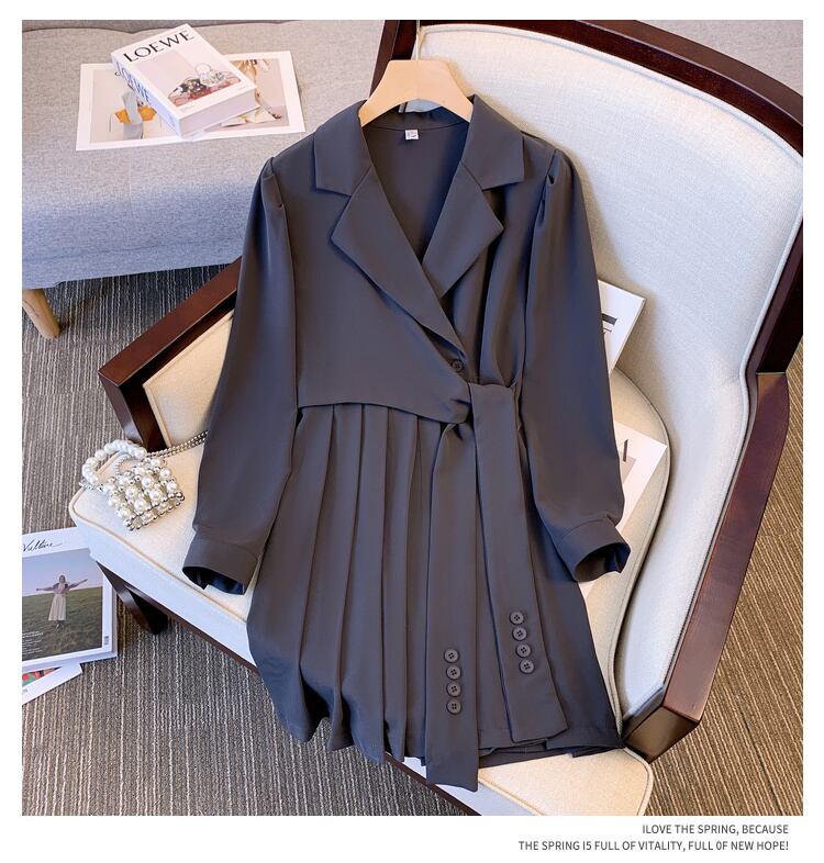 大きいサイズの婦人服 2022 秋の新しいファットシスターカジュアル年齢減少ファッションショー薄い気質オールマッチスーツドレス 大きめサイズ オータム 秋物 8884171579038490