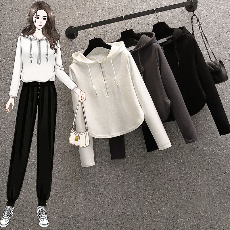 大きいサイズの婦人服 2022 秋の新ファットシスターデザインセンスカジュアルスポーツ風フード付きルース肉カバーセーター女性 大きめサイズ オータム 秋物 8884130208650722