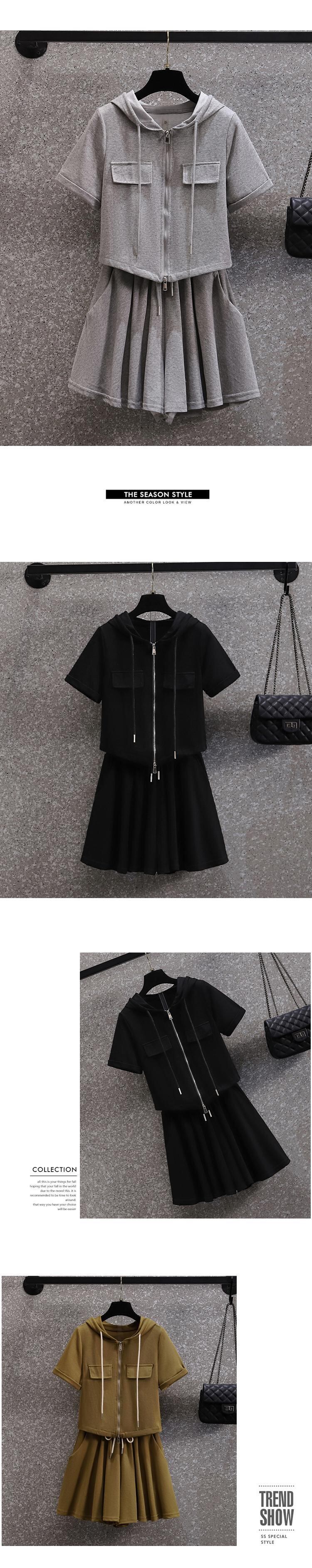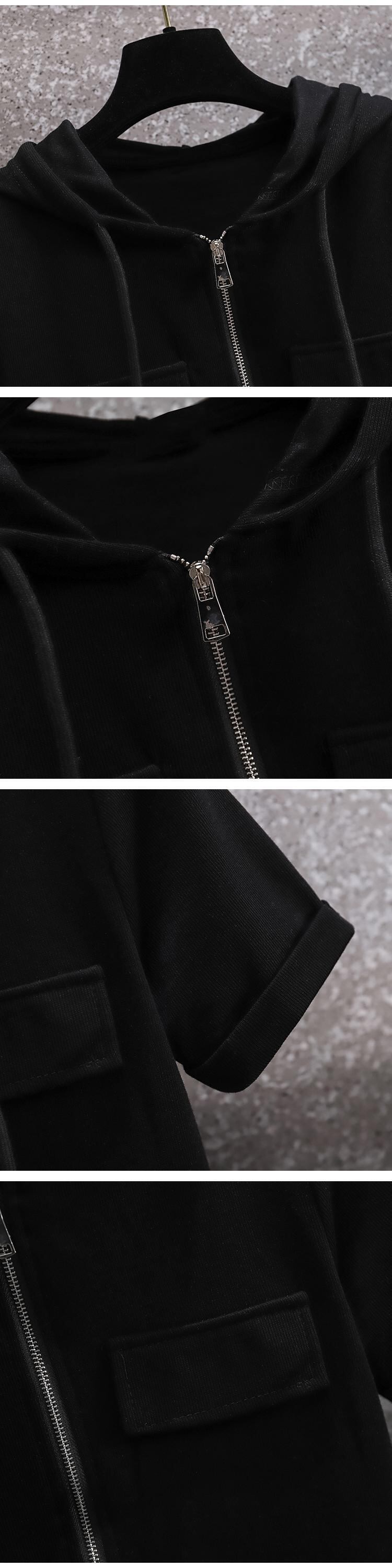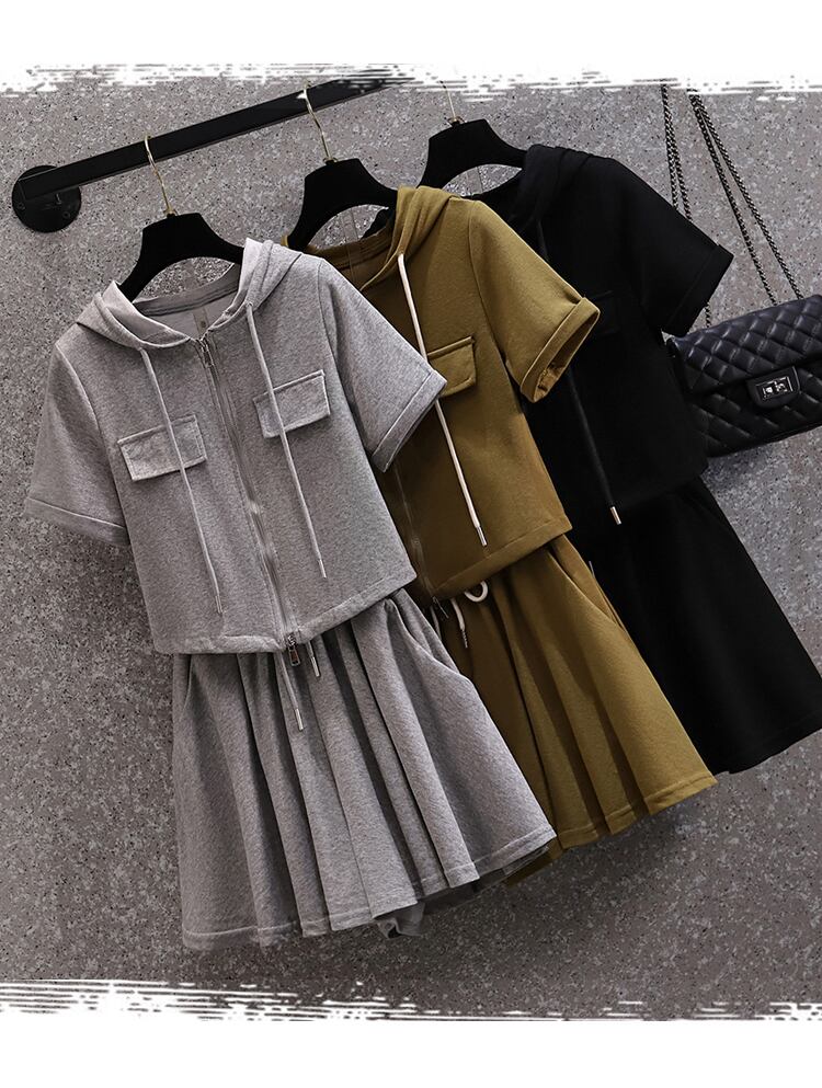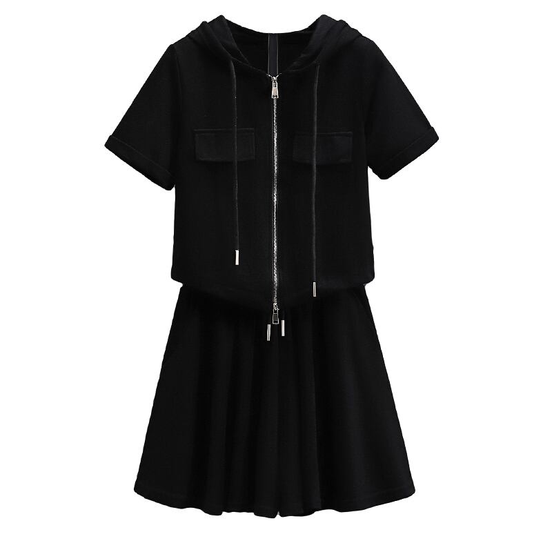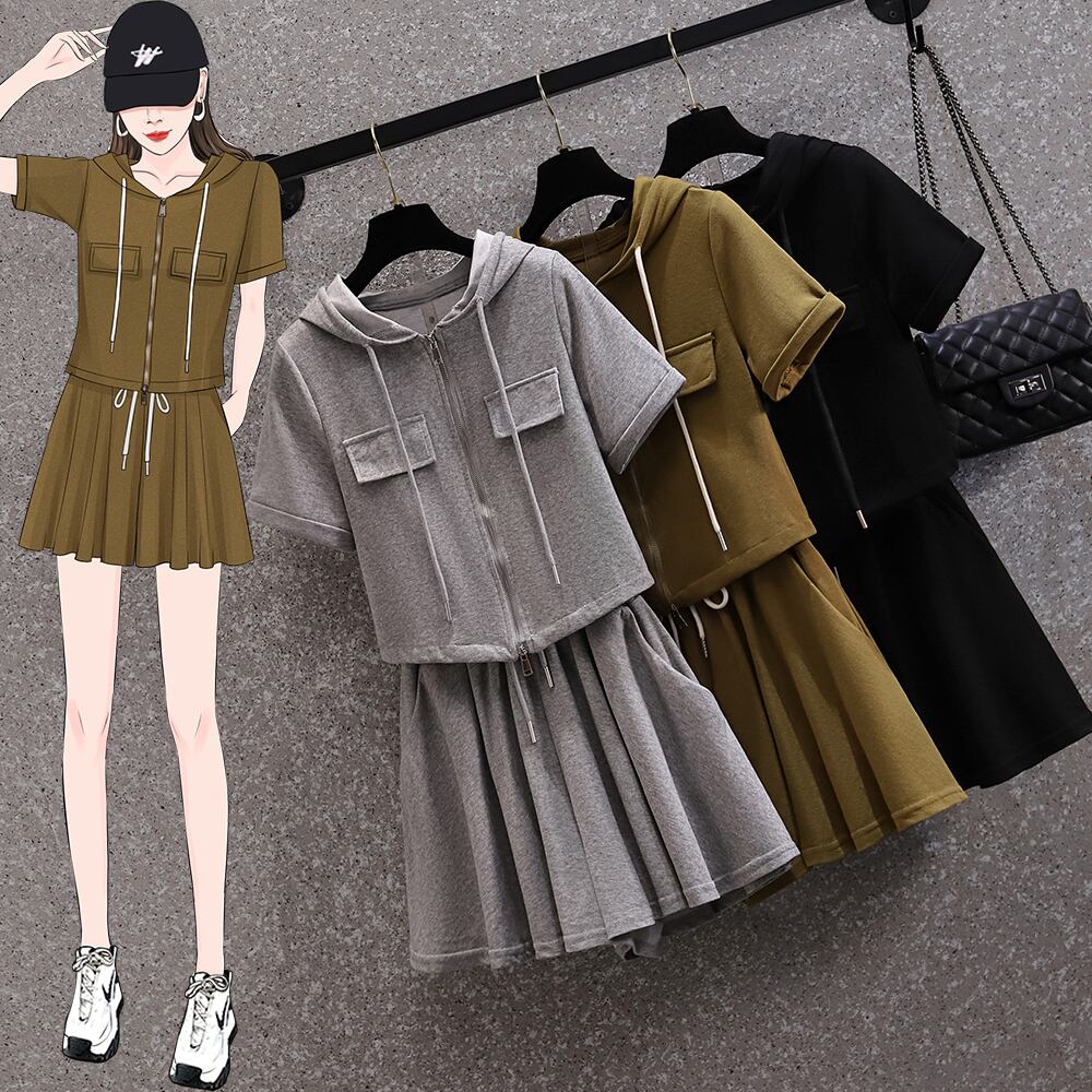 大きいサイズの婦人服 2022 太った姉妹夏の新しいファッション薄いカジュアル フード付き半袖トップスとショーツ 2 点セット 大きめサイズ サマー 夏物 ブルマー 8884174650394151