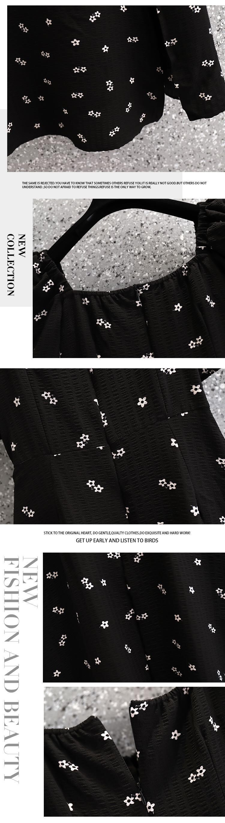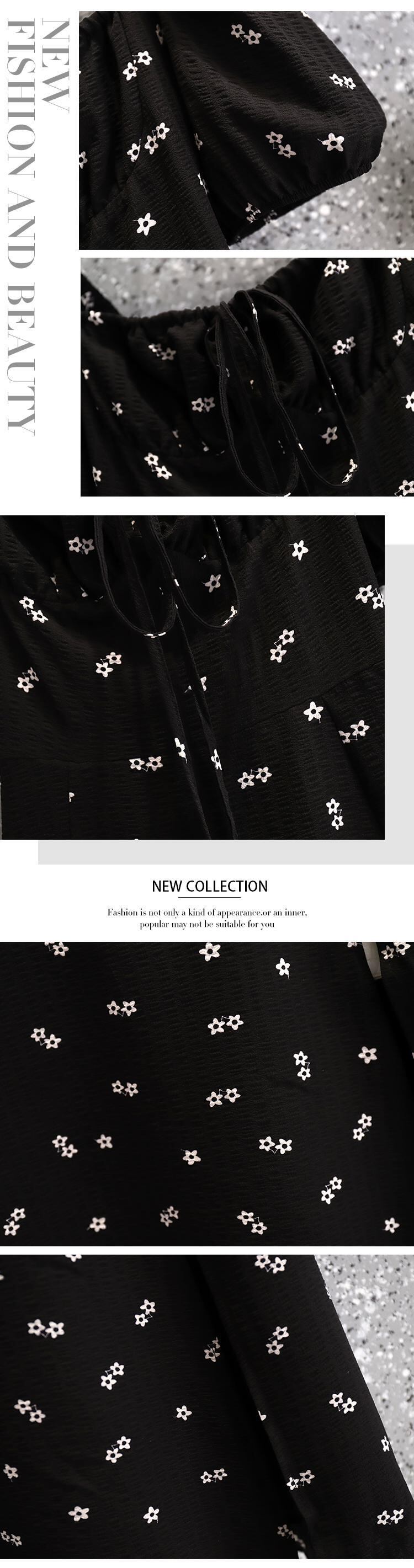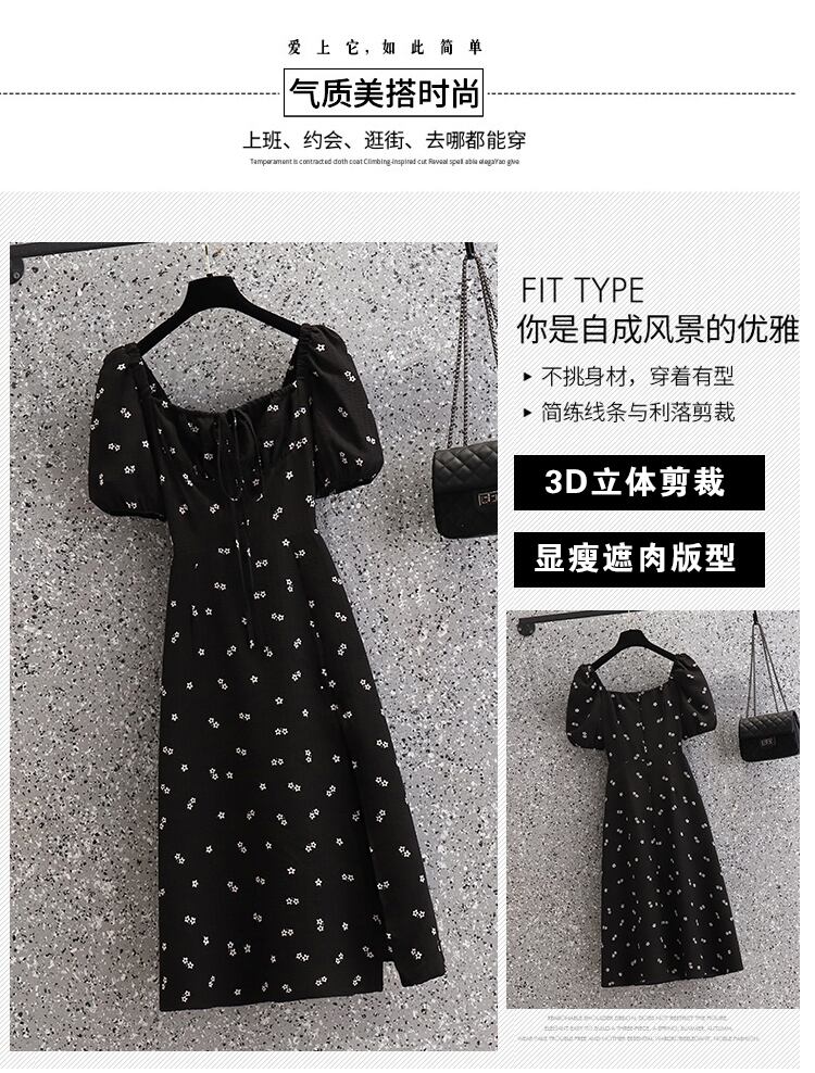 大サイズの婦人服 2022 ファットシスター夏新スタイル痩身ウエスト痩身小花柄スプリットパフスリーブドレス 大きめサイズ サマー 夏物 8884189233631115