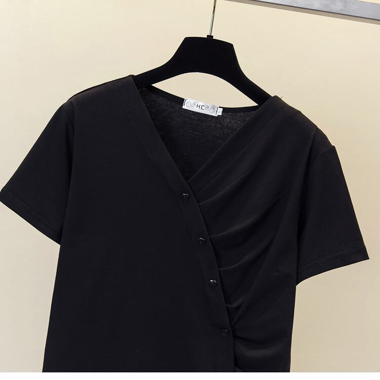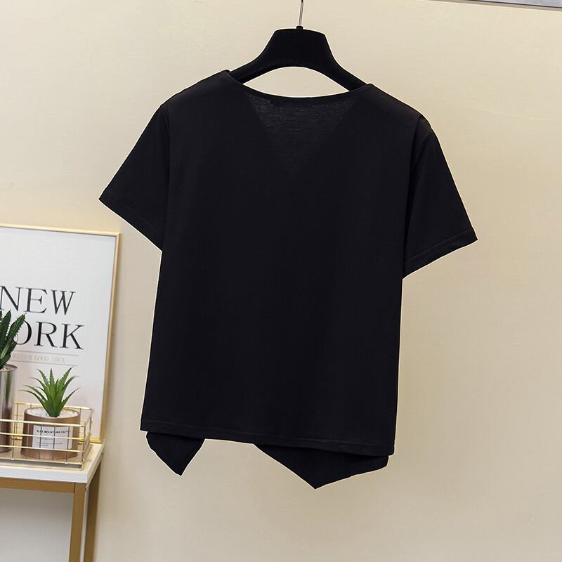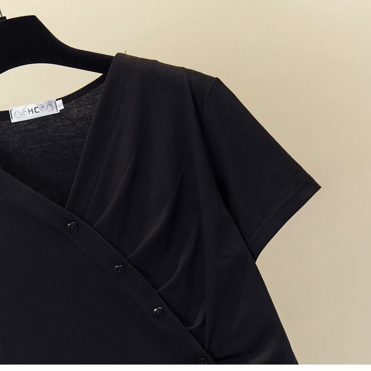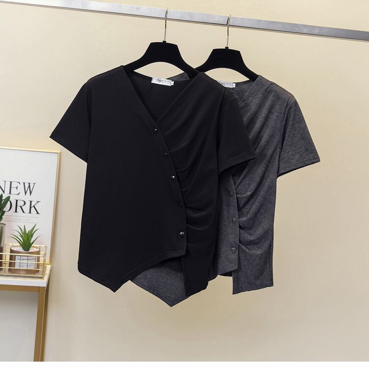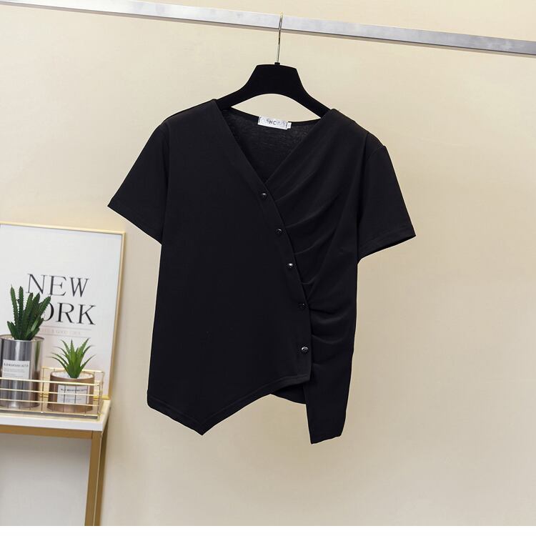 大きいサイズ レディース イレギュラー Vネック 着痩せ 2022夏 新作ファッション オールマッチ 半袖 年齢を抑えた半袖Tシャツ トレンド 大きめサイズ サマー 夏物 8884132749152645