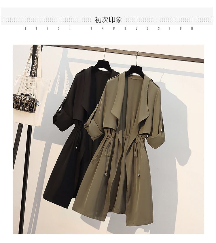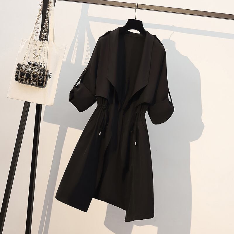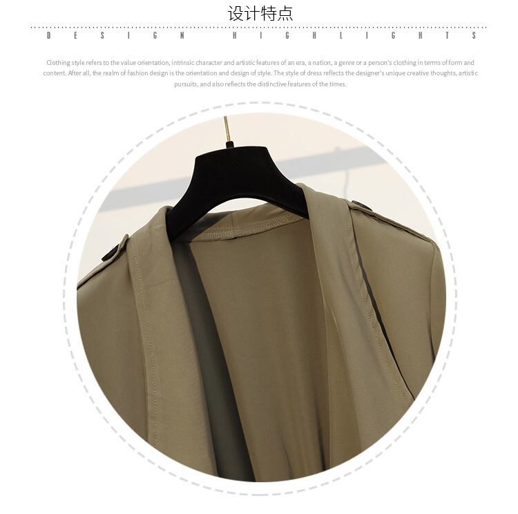 大きいサイズの婦人服 2022 秋の新しいファットシスターファッション緩い洋風オールマッチ無地ミッドレングストレンチコート 大きめサイズ オータム 秋物 ソリッドカラー 8884140719205851