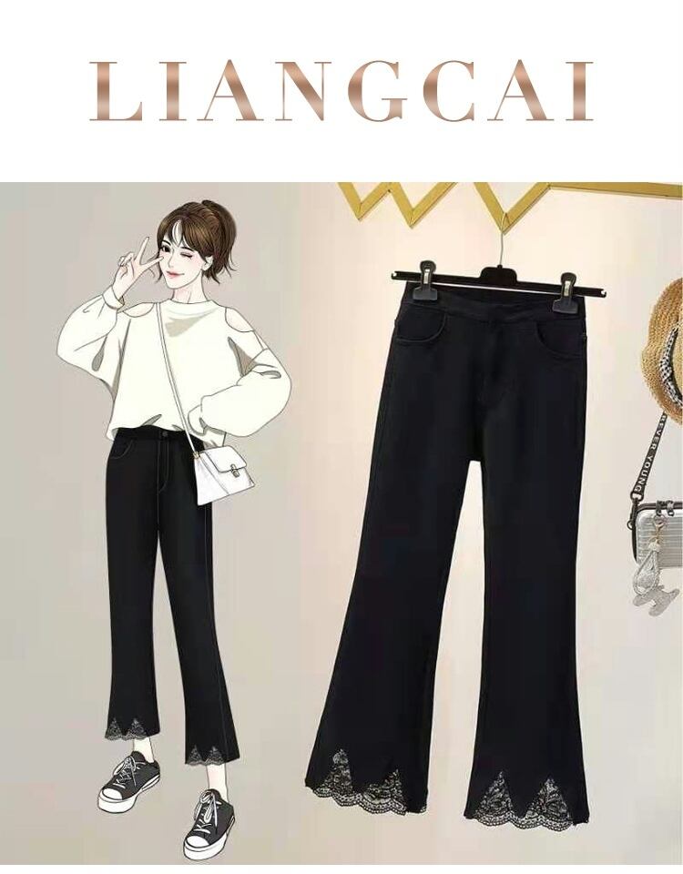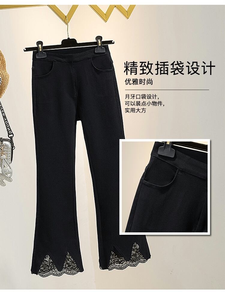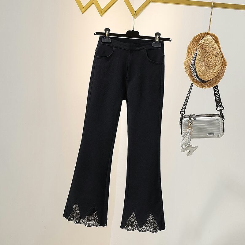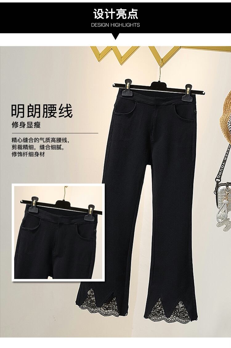 大サイズの婦人服 2022 ファットシスター秋新クロップドパンツ弾性ハイウエストスリムスリムレースフレアパンツ女性 ハイウェスト レッド エラスティック 伸縮 大きめサイズ オータム 秋物 8884165999998213