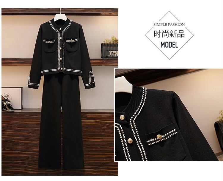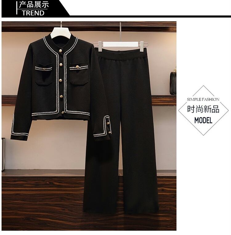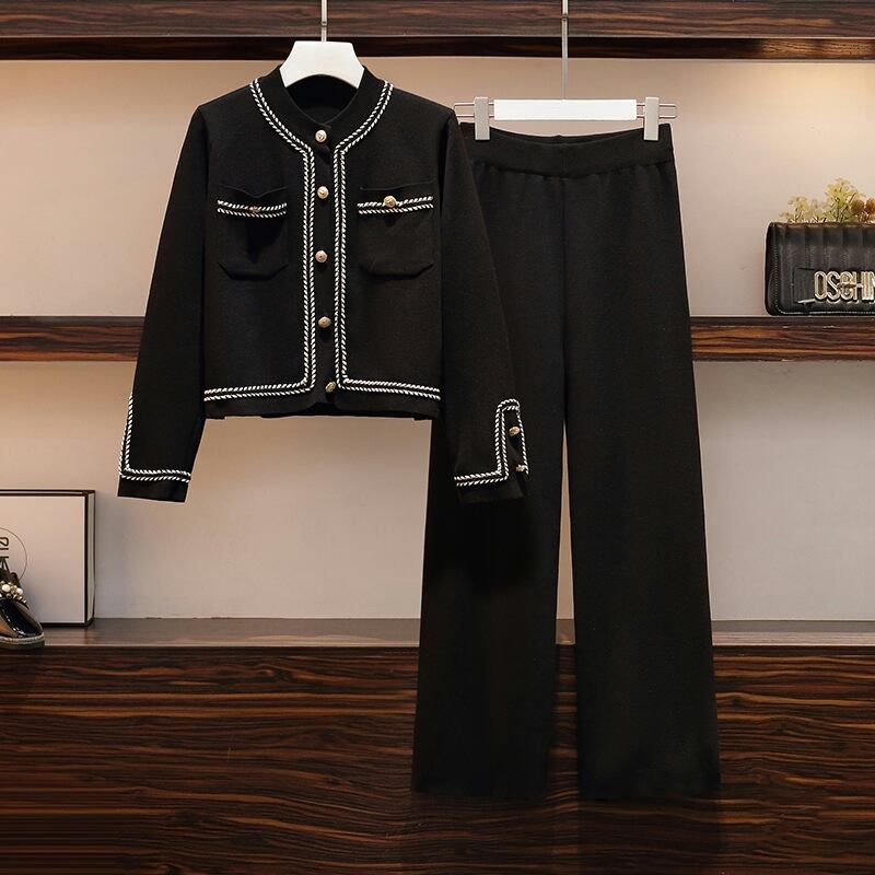 大きいサイズの婦人服 2022 ファットシスター秋の新ファッションルーズニットトップハイウエストワイドレッグパンツ 2 点セット ハイウェスト 大きめサイズ オータム 秋物 ワイドパンツ 8884191513877229