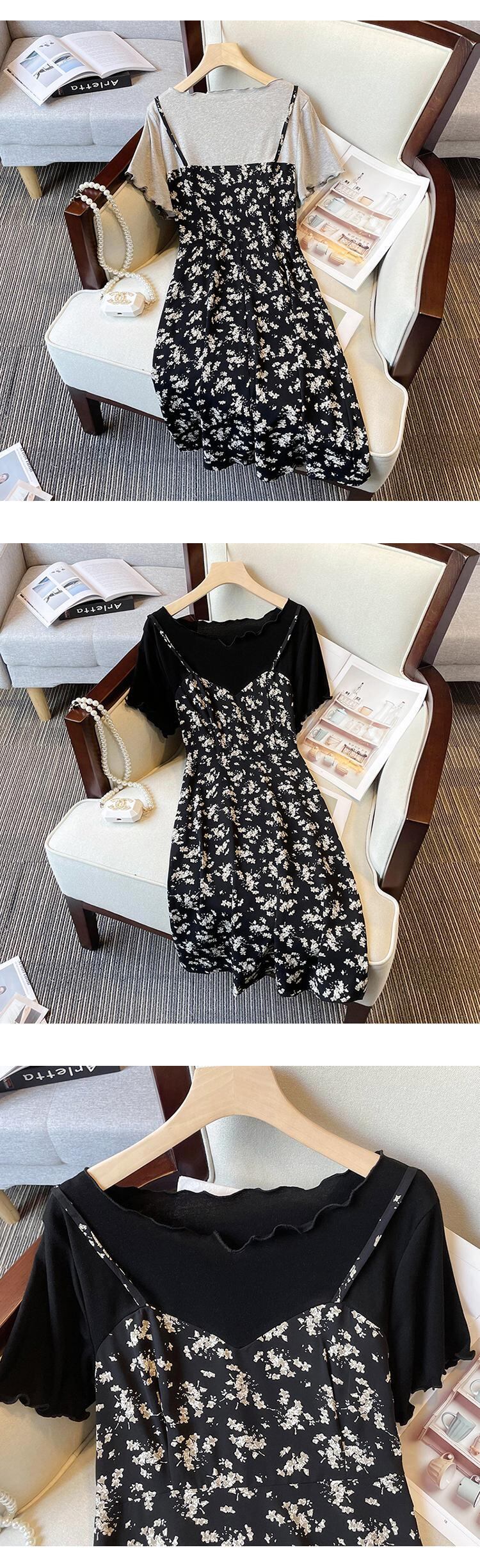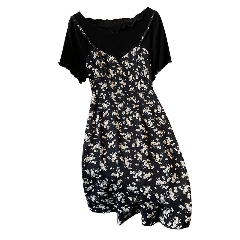 大きいサイズの婦人服 2022 流行の女性の夏の新しいファット シスター ファッション フェイク ツーピース ステッチ スリング プリント ウエスタン スタイルのドレス 大きめサイズ サマー 夏物 8884115250370577
