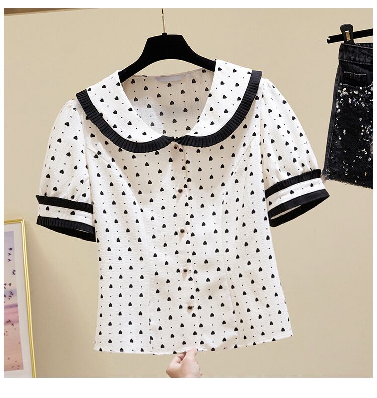 大きいサイズのフレンチトップの女性の 2022 夏の新しい女性のレトロな人形の襟のファッションオールマッチの花柄のシャツのトレンド 大きめサイズ サマー 夏物 8884142937706605