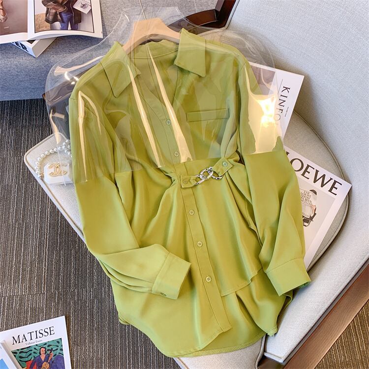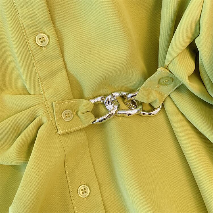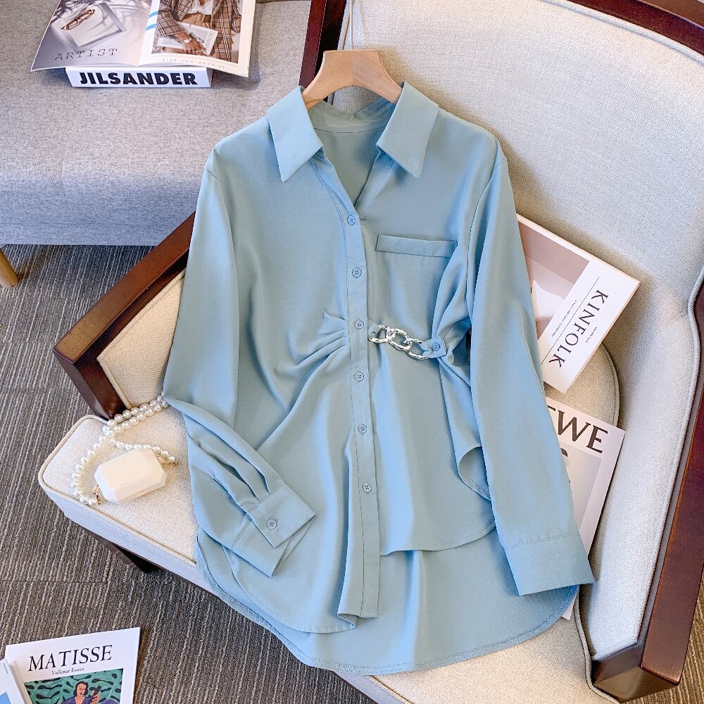 大サイズの婦人服 2022 ファットシスター秋の新ファッション eign スタイルの年齢を減らす長袖ウエストチェーン長袖シャツ女性 ロング 大きめサイズ オータム 秋物 8884138417787864