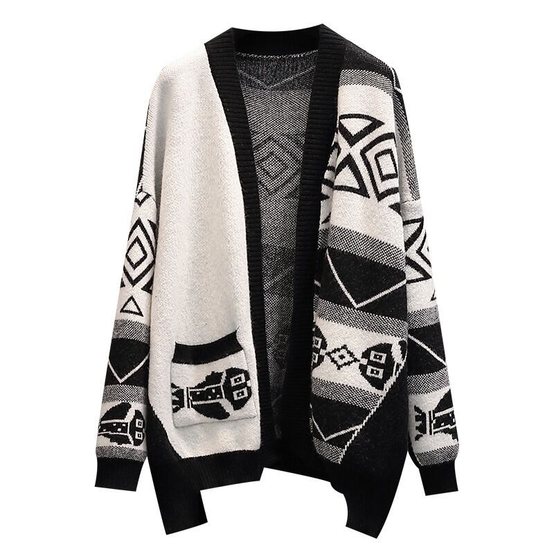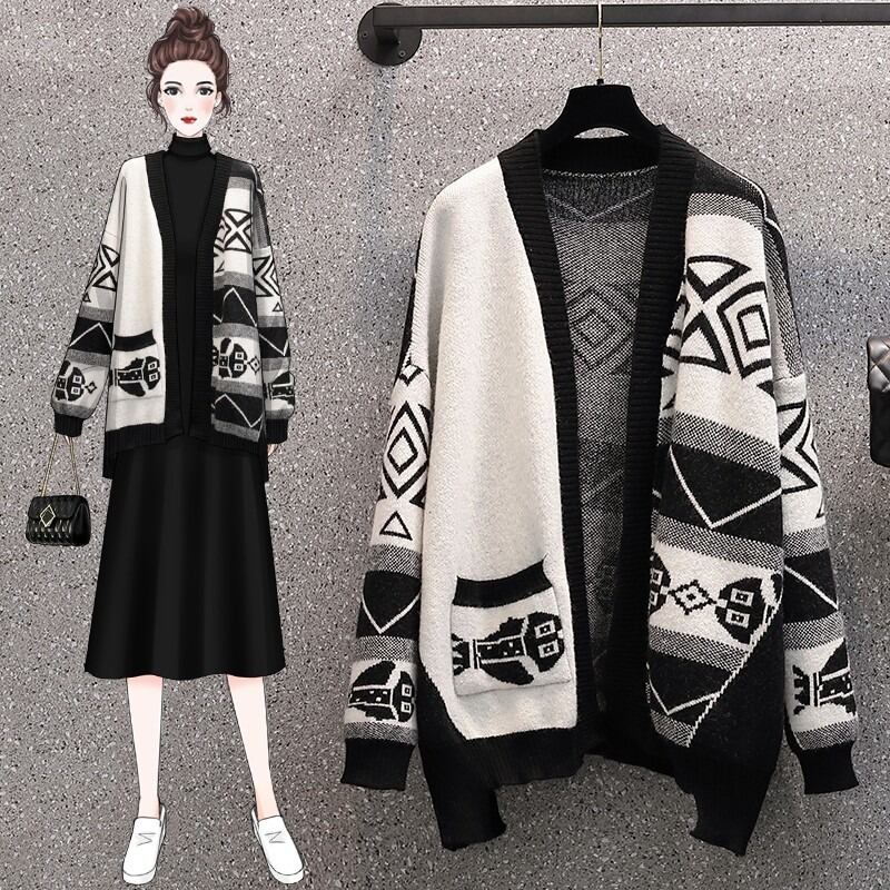 大きいサイズの女性のルーズで薄い肉を覆うトップス 2022 秋の新しいファッションオールマッチ長袖カーディガンセーター ロング 大きめサイズ オータム 秋物 8884167944469708