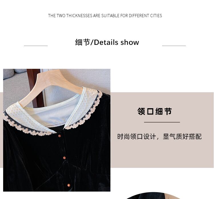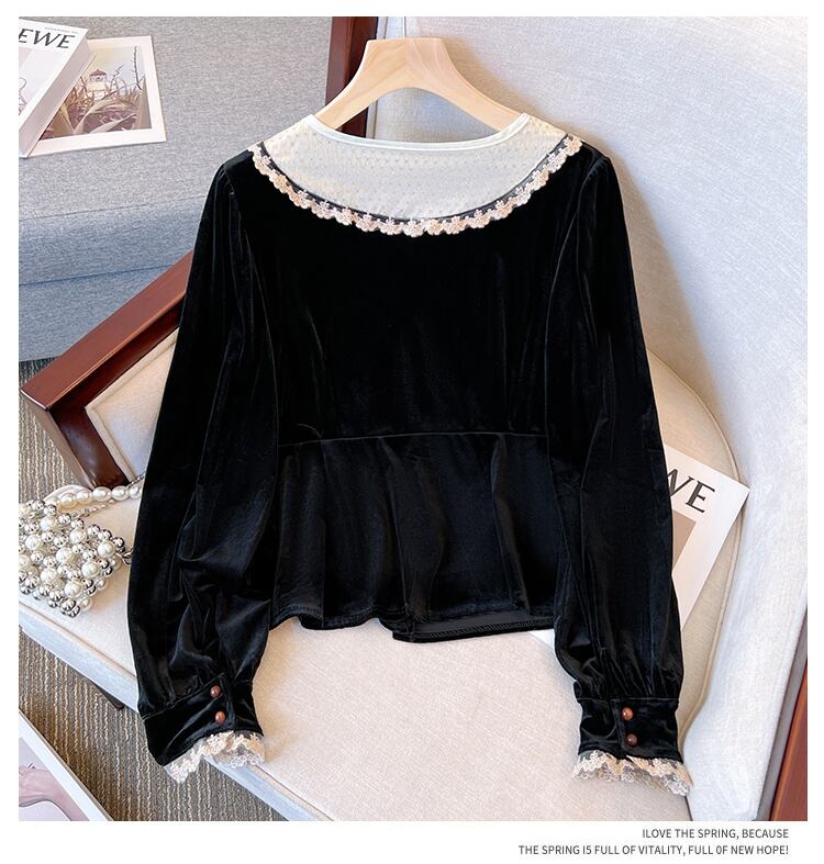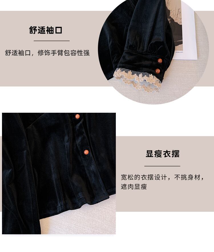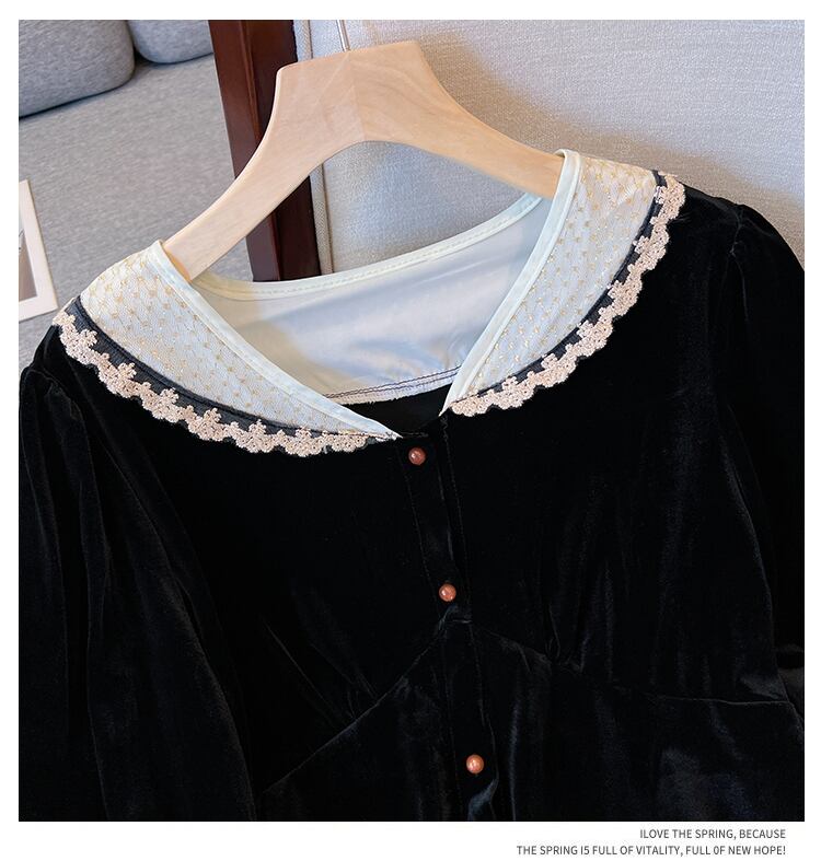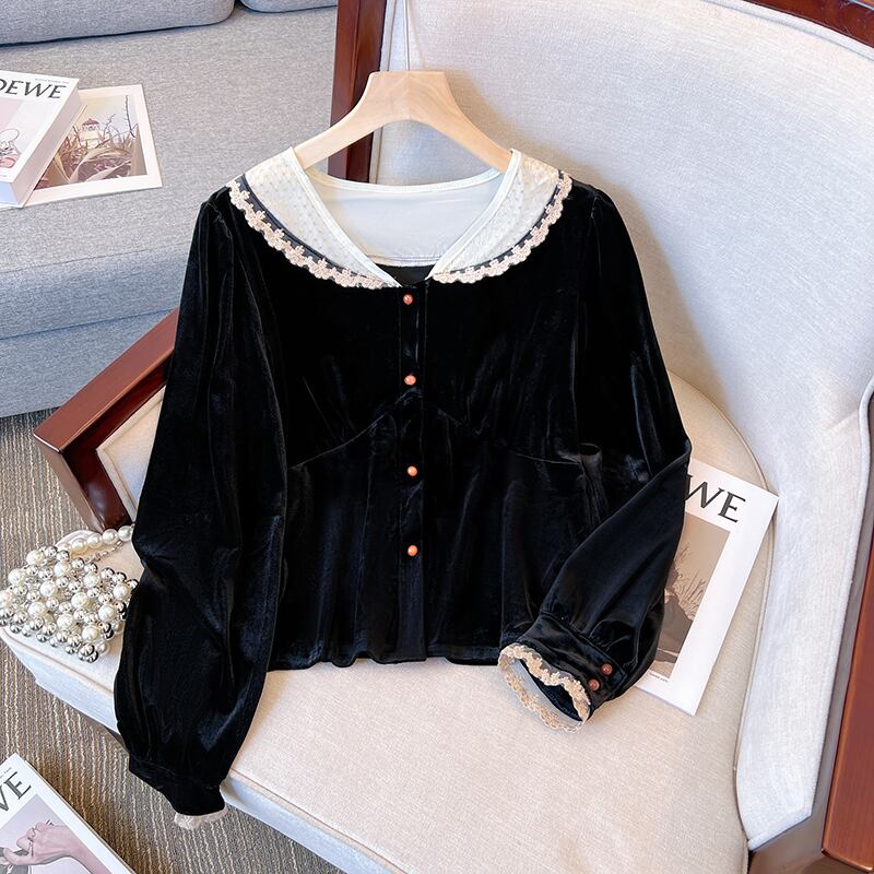 大サイズの婦人服 2022 ファットシスター秋の新シャツニッチフレンチゴールドベルベットショート人形の襟トップ女性 大きめサイズ オータム 秋物 8884110837349393