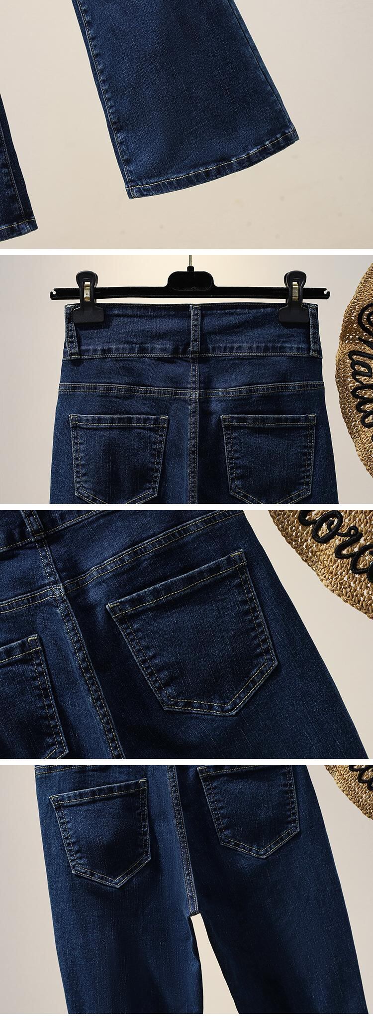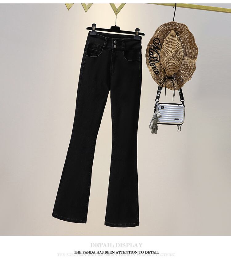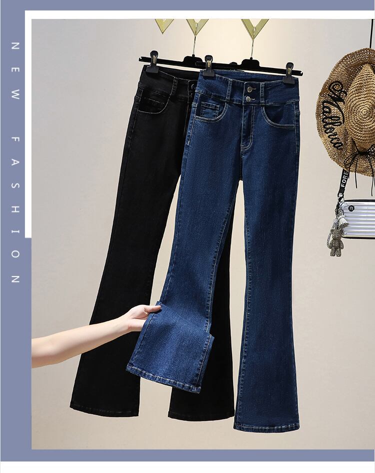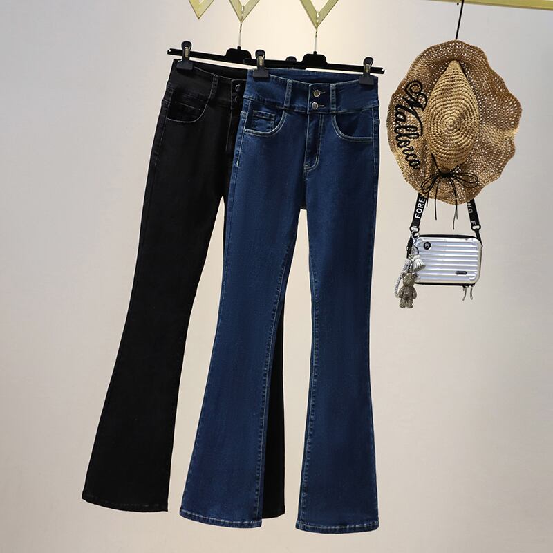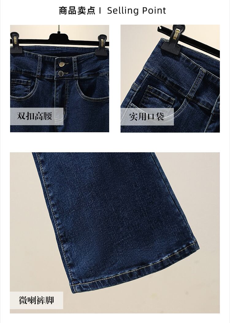 大きいサイズの婦人服 2022 秋の新しいファットシスター弾性マイクロラハイウエストスリムフィットと薄い気質カジュアルジーンズ ハイウェスト エラスティック 伸縮 大きめサイズ オータム 秋物 8884198808606389