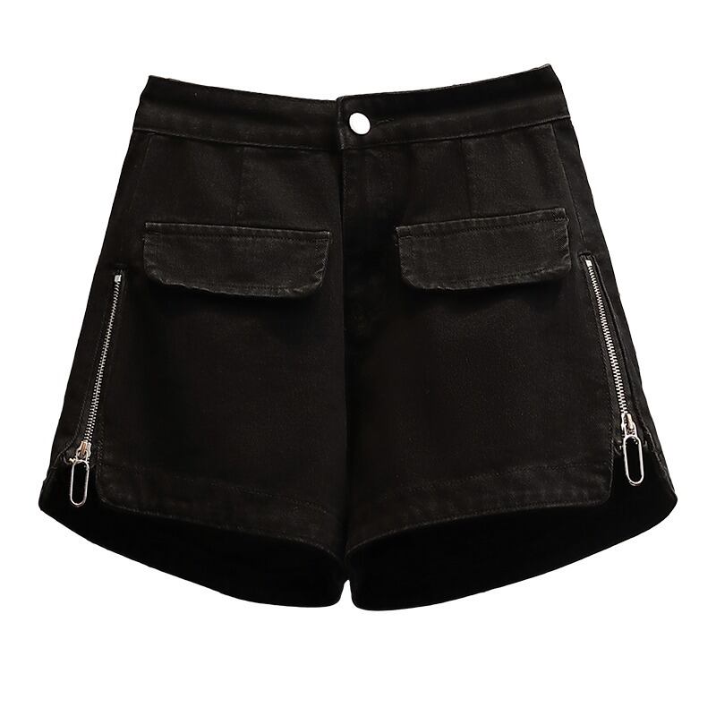 大きいサイズの婦人服2022トレンディな女性の夏の新しいファットシスターファッションオールマッチ薄いハイウエストサイドジッパーデニムショーツトレンディ ハイウェスト 大きめサイズ サマー 夏物 ブルマー 8884195058178749