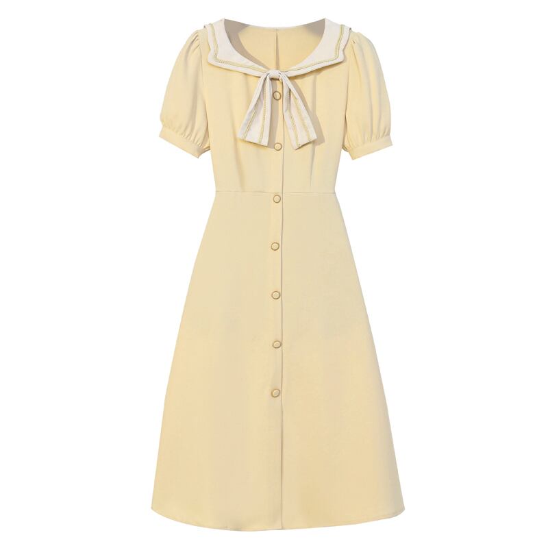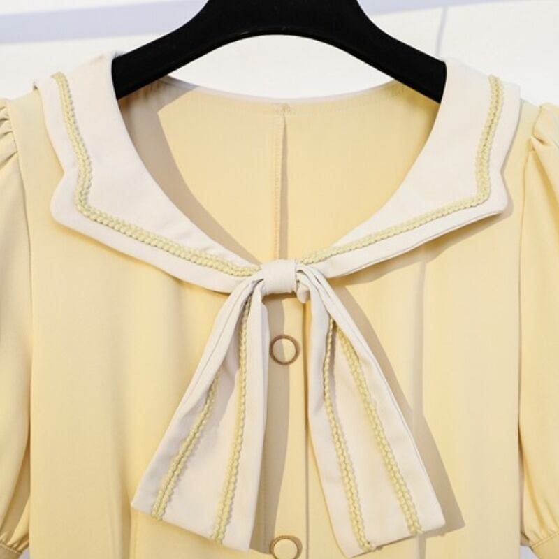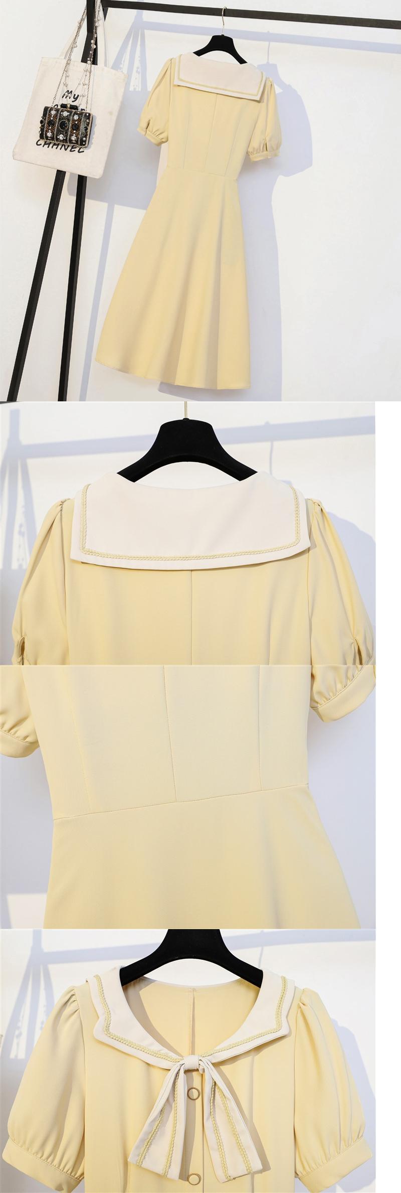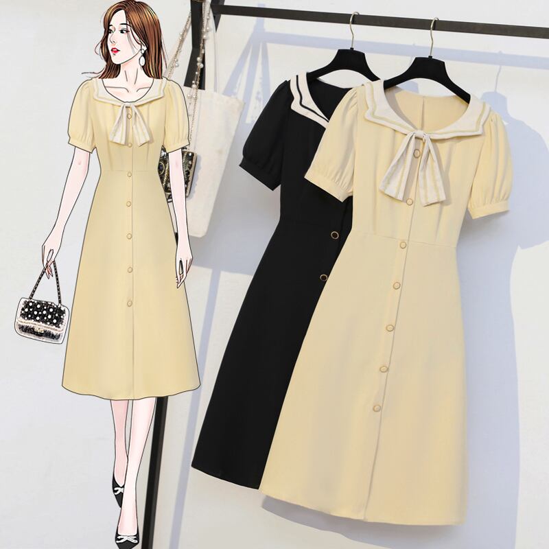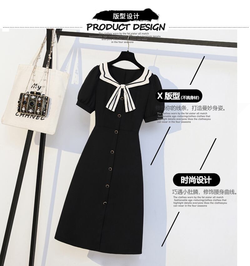 大きいサイズの婦人服 2022 夏の新しいファットシスターヘップバーンスタイルのネイビーカラーとウエストフレンチ気質のドレス 大きめサイズ サマー 夏物 8884128128101173