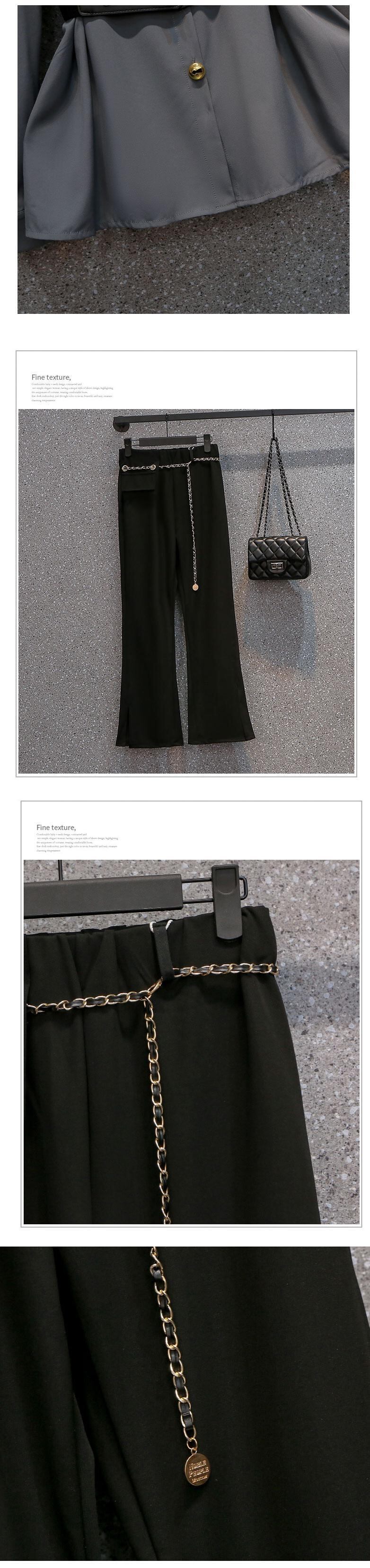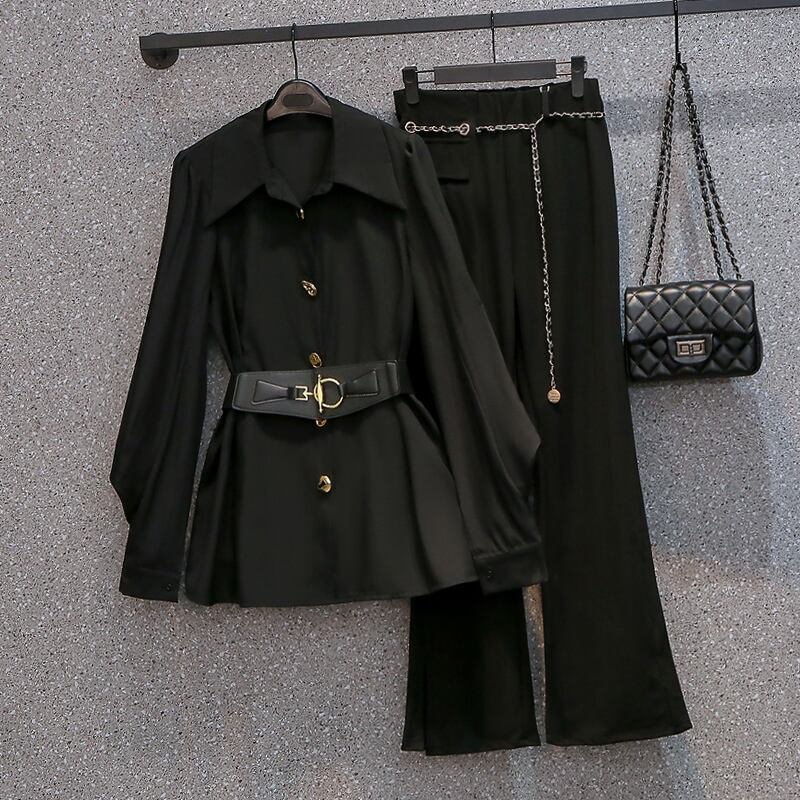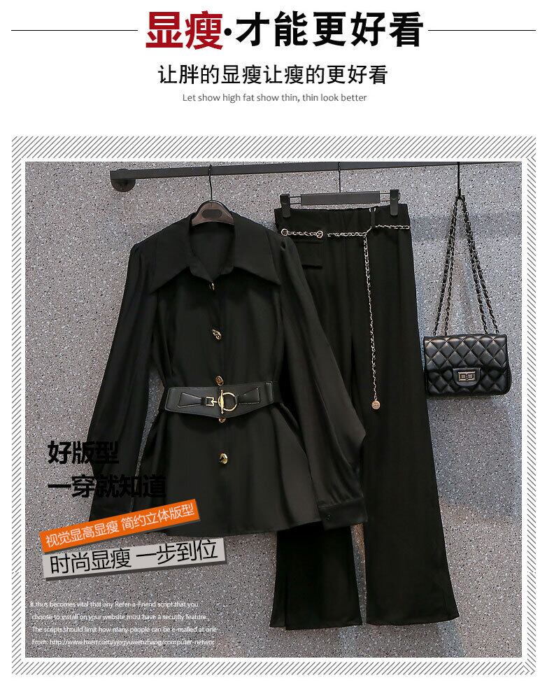 大きいサイズの婦人服 2022 ファット シスター秋の新しいスタイルのウエストと肉を覆う薄い長袖シャツ ワイドレッグ パンツ ツーピース スーツ ロング 大きめサイズ オータム 秋物 8884176790884777
