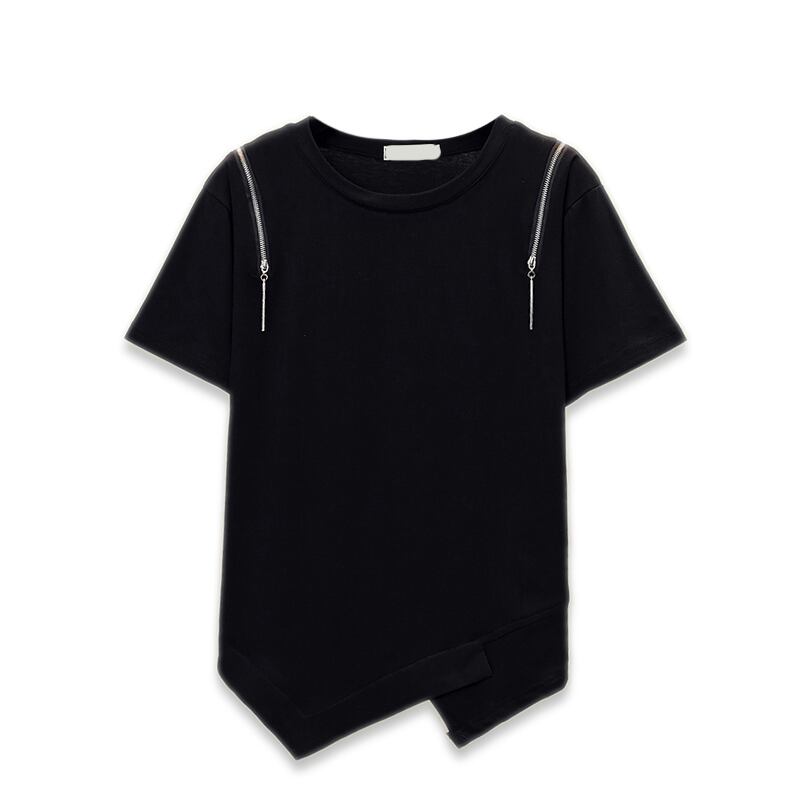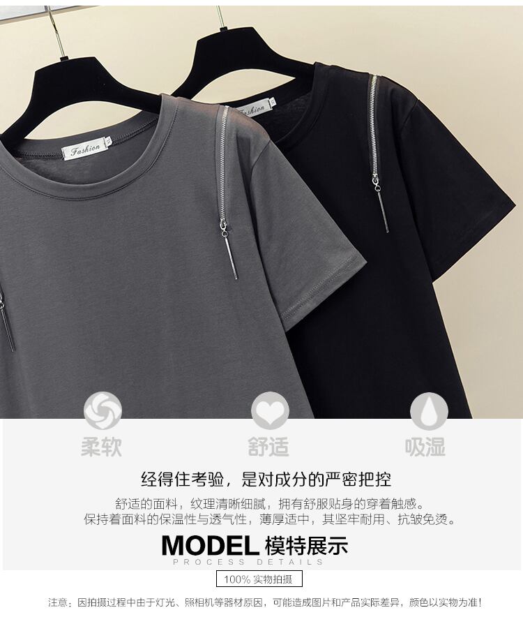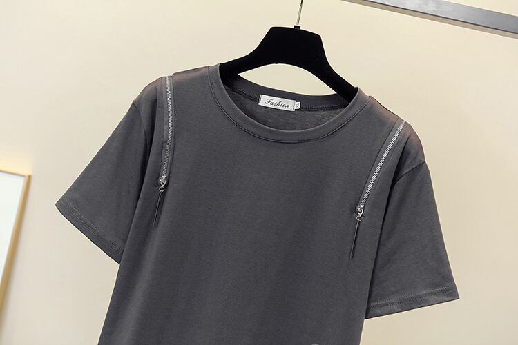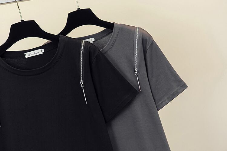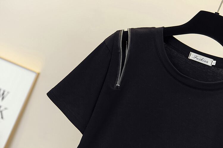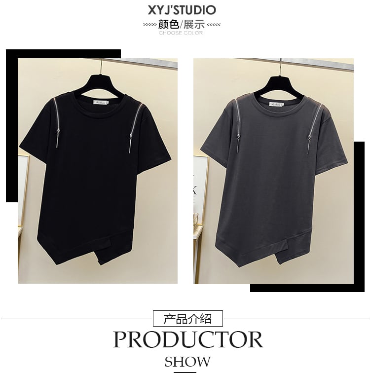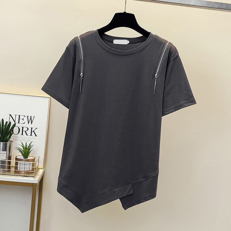 大きいサイズの婦人服 2022 夏の新しいファット シスター年齢を減らすルーズなデザイン センス オールマッチ不規則なニット Tシャツの女性 大きめサイズ サマー 夏物 8884159797573923