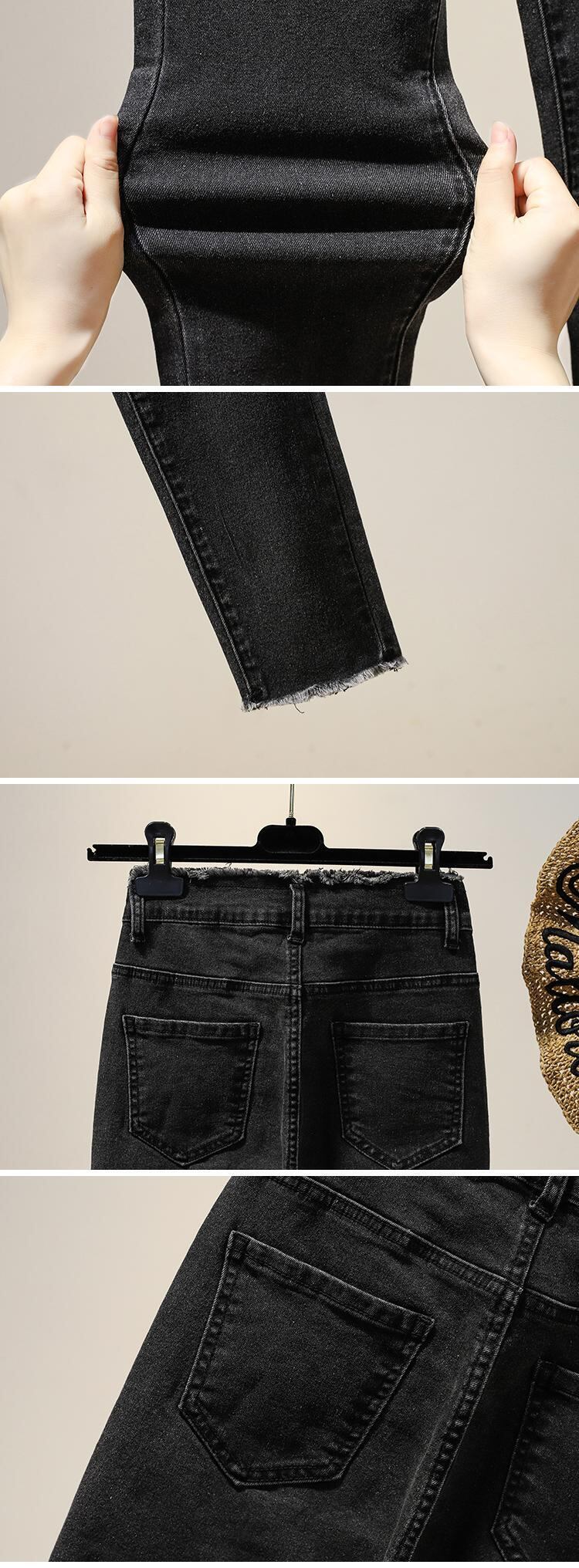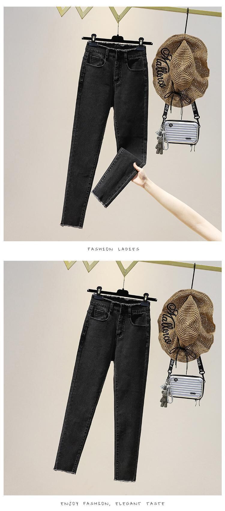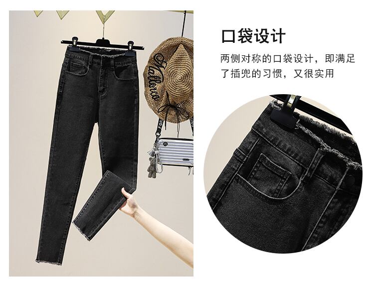 ストレッチ ウエスタン スタイル ジーンズ女性の秋 2022 新しい大きいサイズの女性のハイ ウエスト生エッジ薄い無地ペンシル パンツ ハイウェスト 大きめサイズ オータム 秋物 ソリッドカラー 8884199471635091