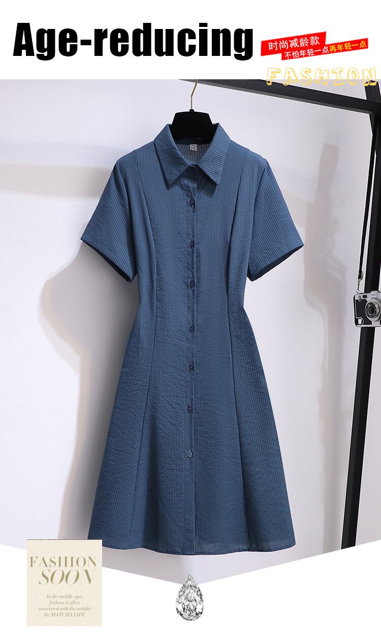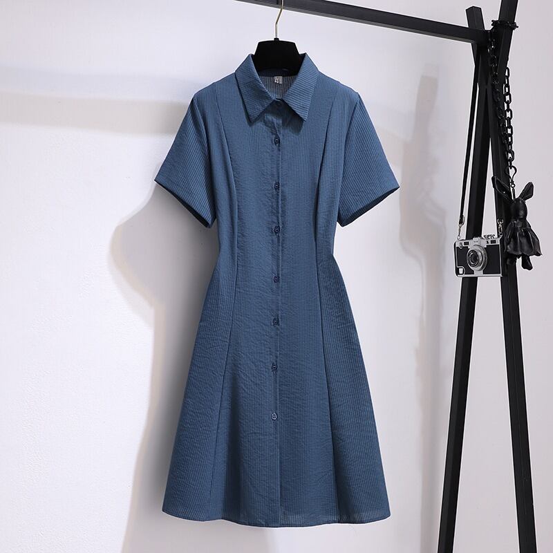 サマードレス 2022新作 ポロカラードレス 大きいサイズ 婦人服 デザインセンス コントラストカラー 使い勝手の良い 半袖 スカート トレンド 大きめサイズ 夏物 888412058557641