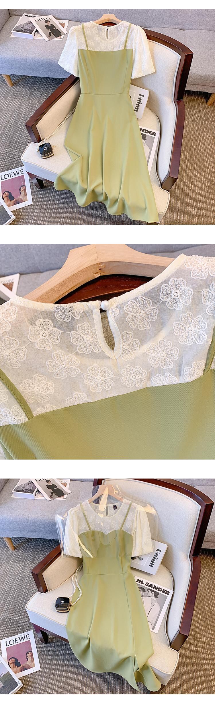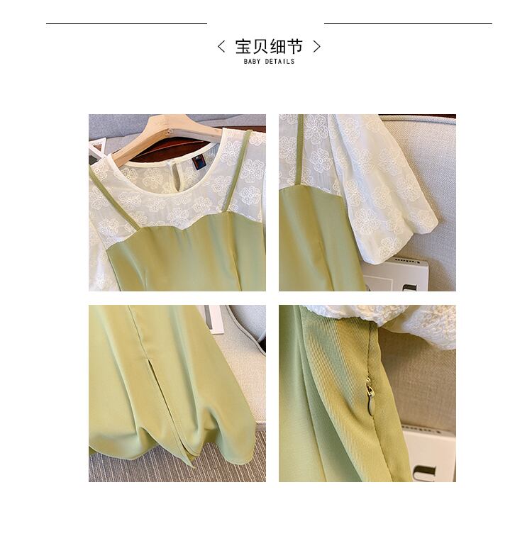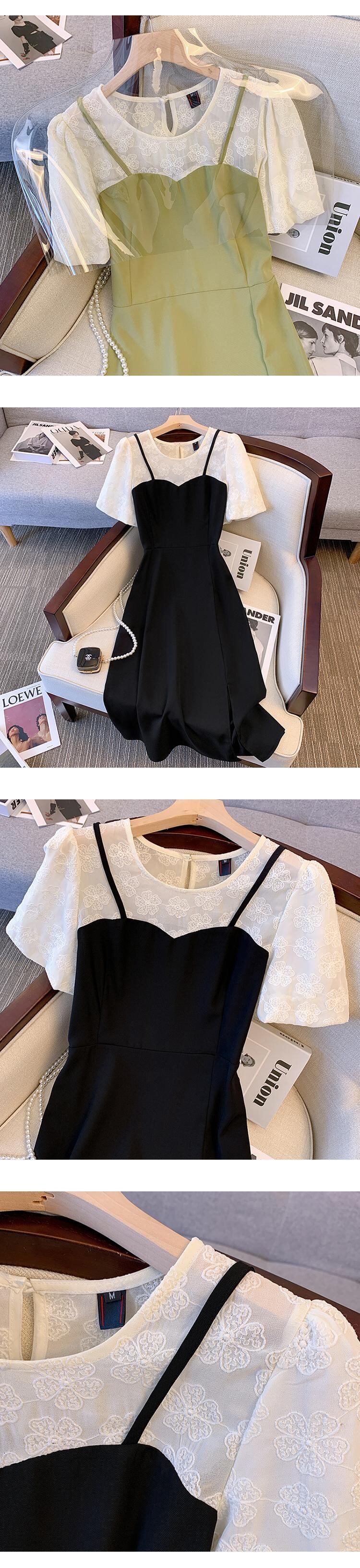大きいサイズの婦人服 2022 トレンディな女性の夏の新しいファットシスターファッションレースステッチフェイクツーピースサスペンダー黒のドレス ブラック 大きめサイズ サマー 夏物 8884149078320441
