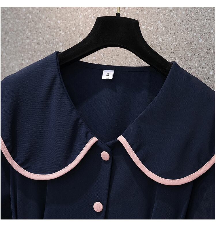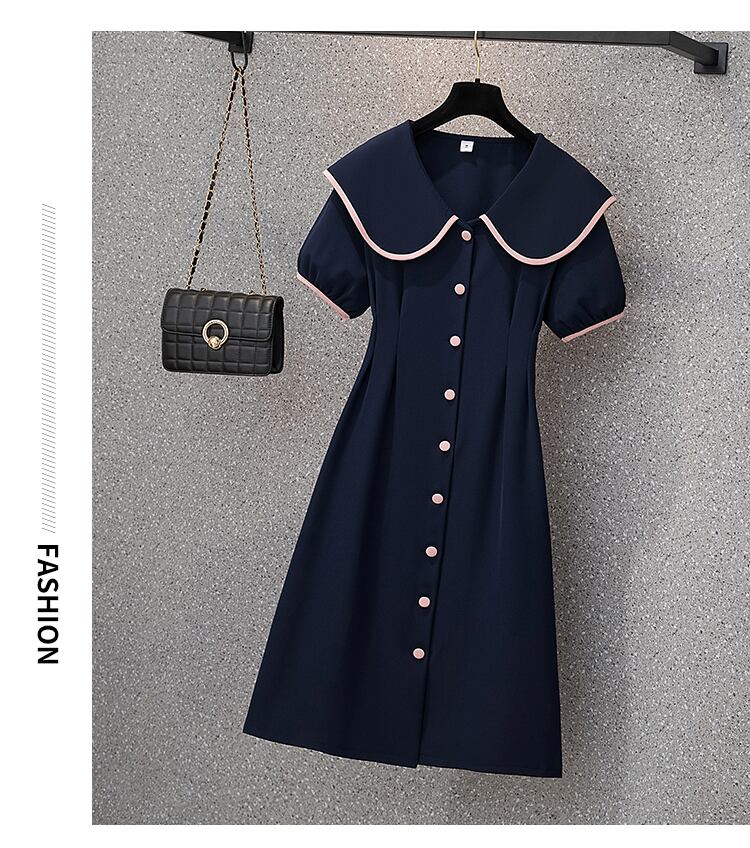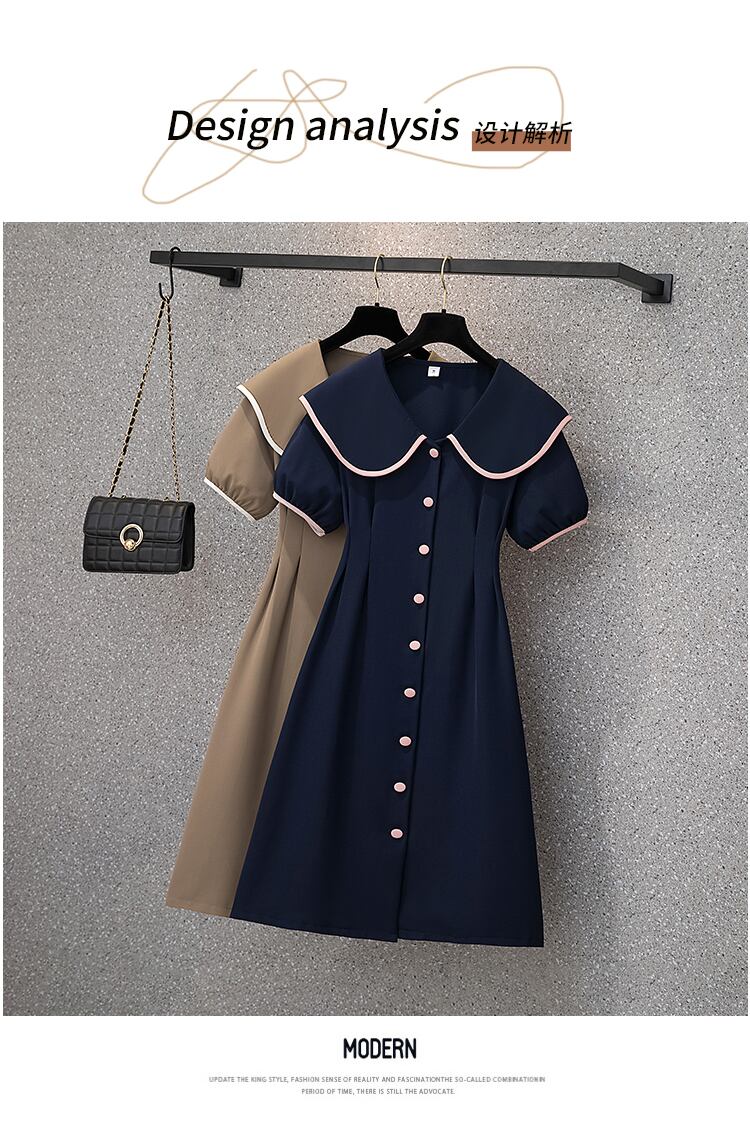 大サイズの婦人服 2022 夏の新しいファットシスターフレンチドールの襟気質デザインセンスウエストステッチドレス 大きめサイズ サマー 夏物 8884172148365113