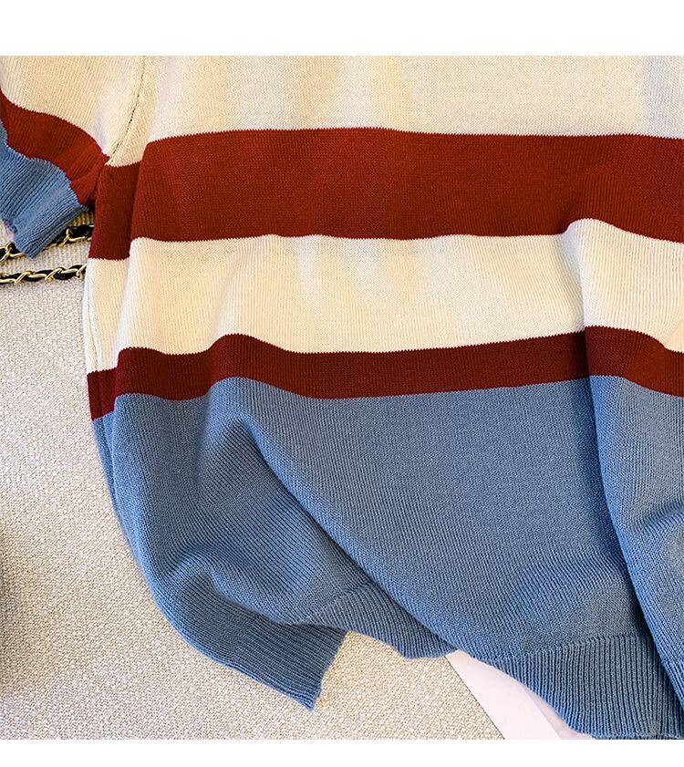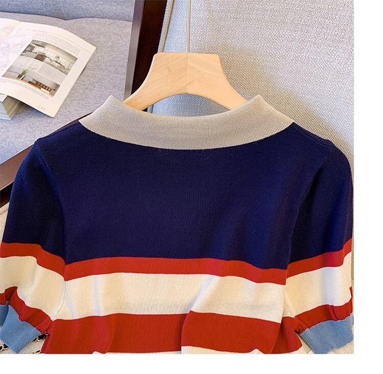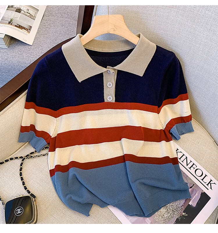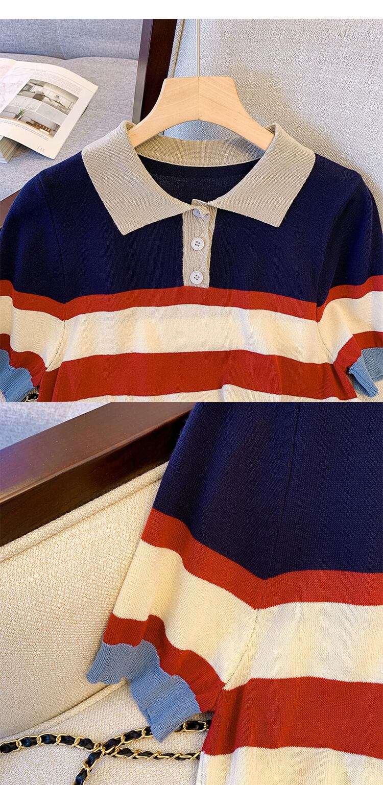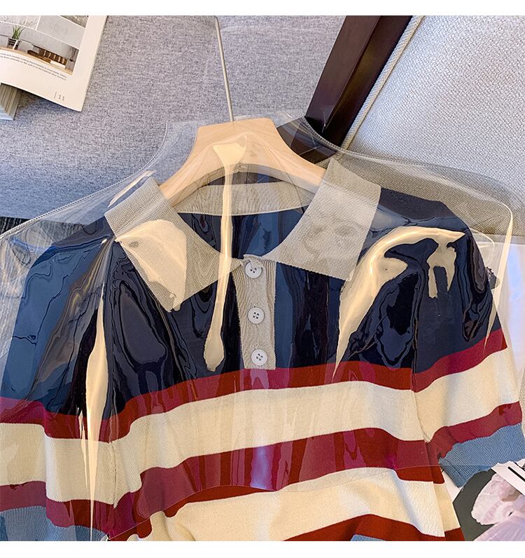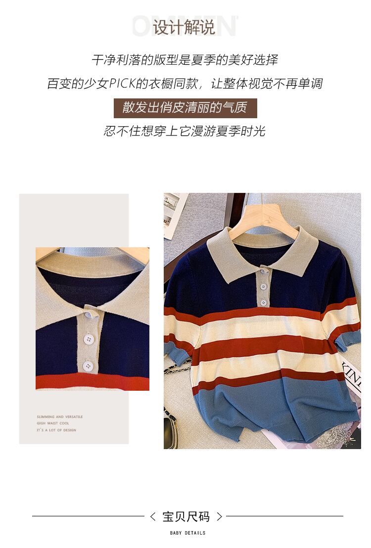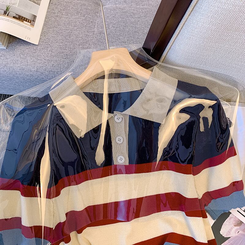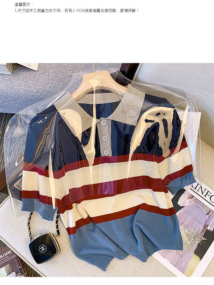 大きいサイズの婦人服 2022 ファットシスター夏の新しいファッションオールマッチ薄いと eign スタイルアイスシルクストライプ半袖トップ女性 大きめサイズ サマー 夏物 8884135438563160