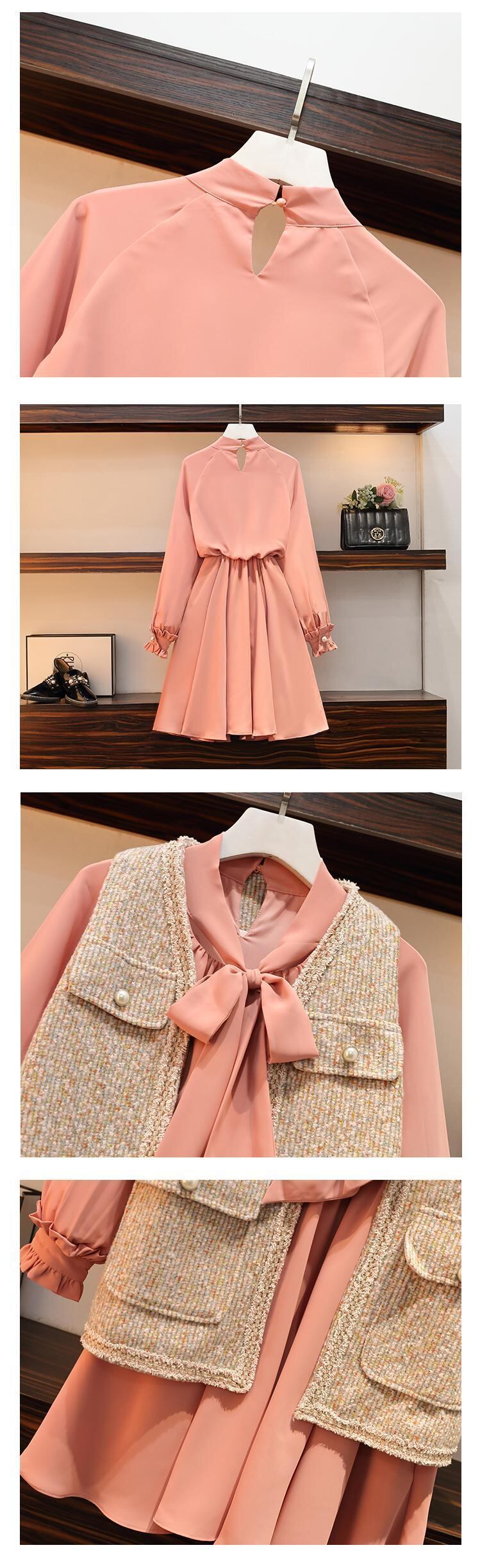 大きいサイズの婦人服 2022 ファットシスター秋の新しい西洋スタイルの年齢を減らすロングベスト痩身ドレスツーピーススーツ 大きめサイズ オータム 秋物 8884135577929456