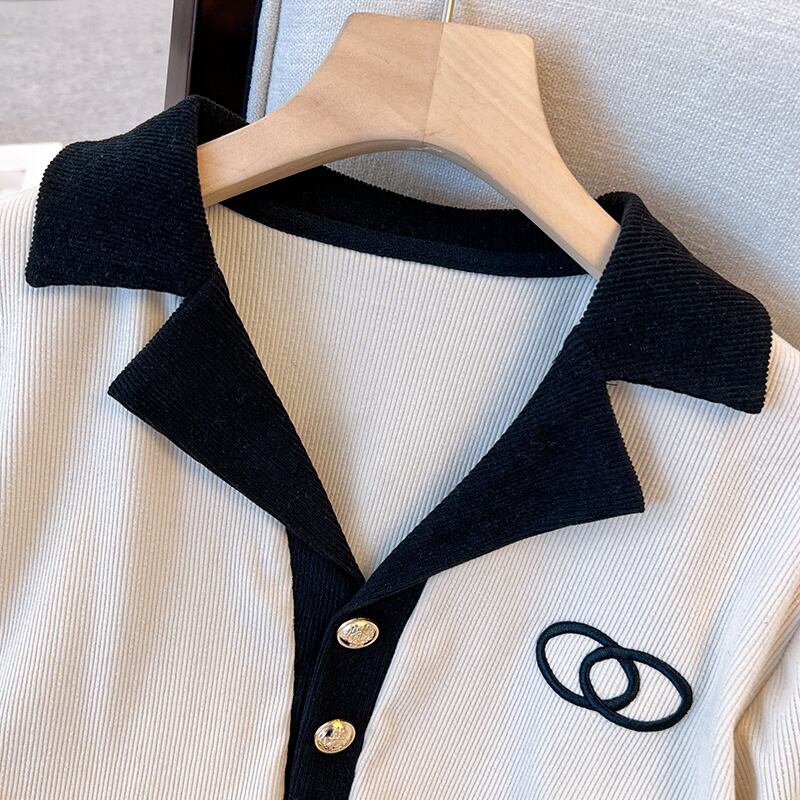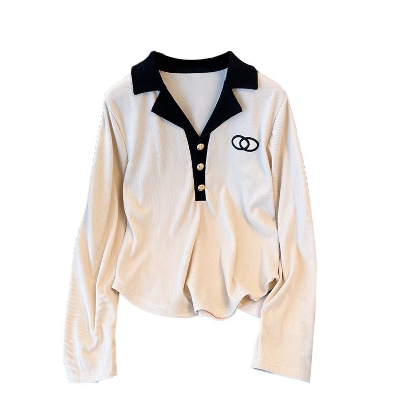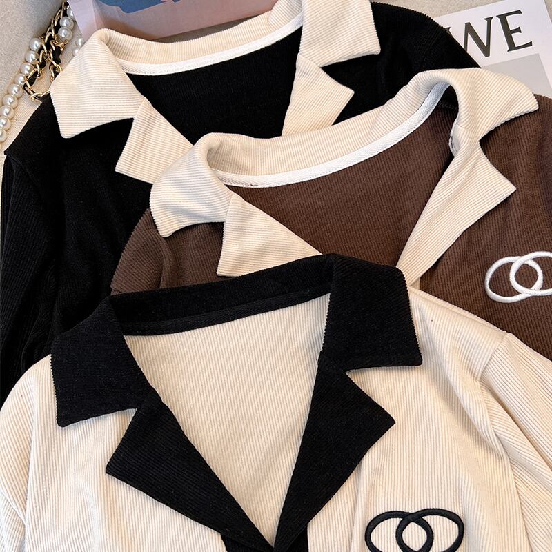 大サイズの婦人服 2022 ファットシスター秋の新スタイルオールマッチ気質ポロ襟痩身トップ長袖 Tシャツ ロング 大きめサイズ オータム 秋物 8884138534154323