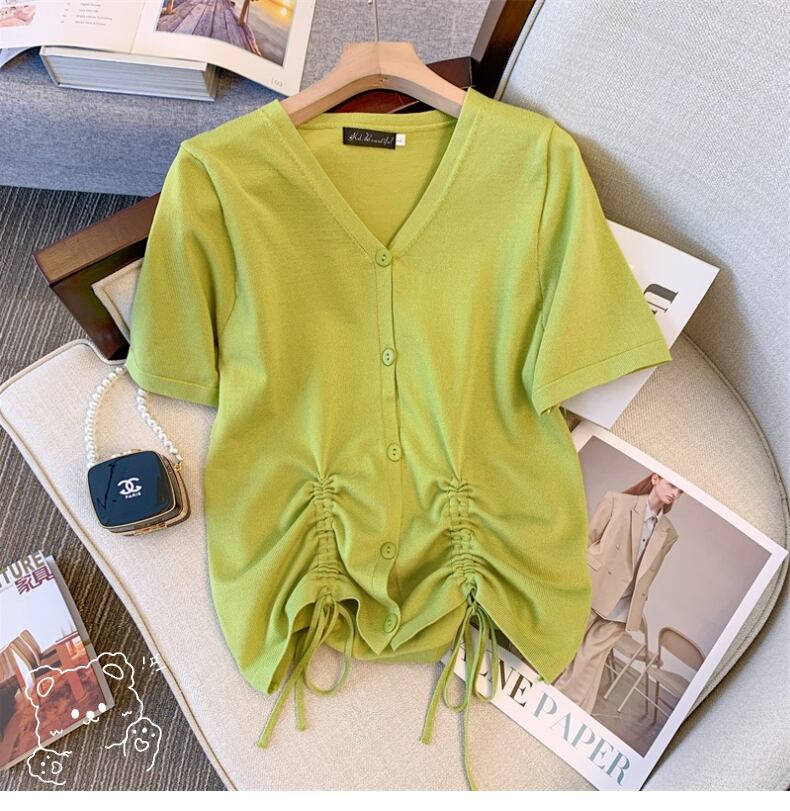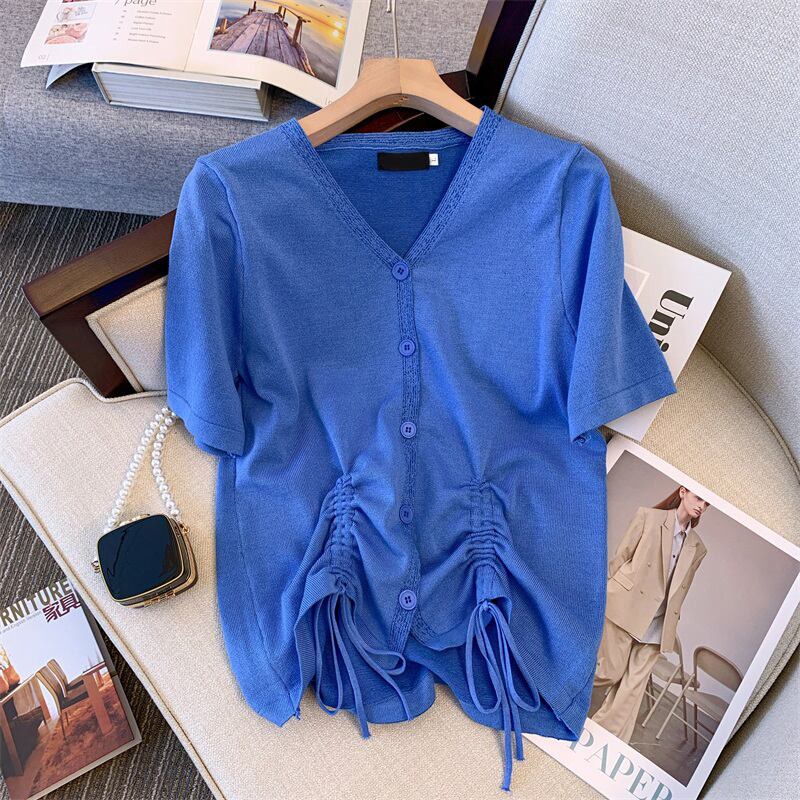 大きいサイズの婦人服 2022 太った姉妹の夏の新しい西洋スタイルのカジュアルなゆったりとした薄いカバー腹半袖ニット トップ女性 大きめサイズ サマー 夏物 8884174708626487