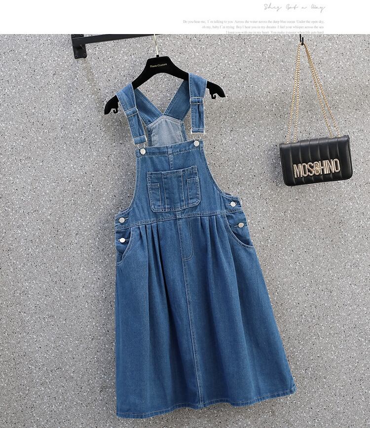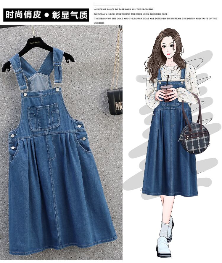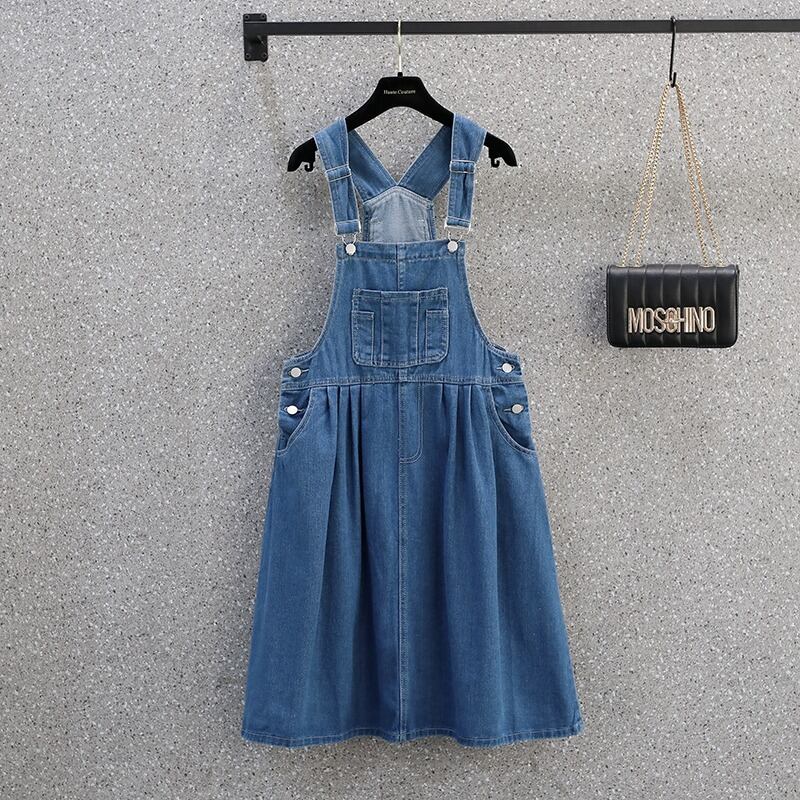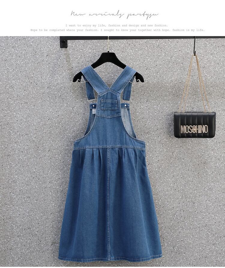 大きいサイズの婦人服 2022 トレンディな女性の夏の新しいファット シスター ウエスタン スタイルの年齢を減らす緩い薄いデニム ストラップ ドレス トレンディ 大きめサイズ サマー 夏物 8884197517644785