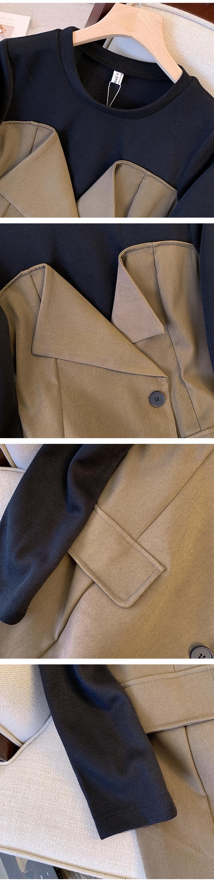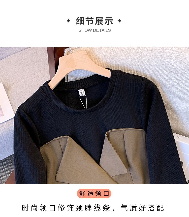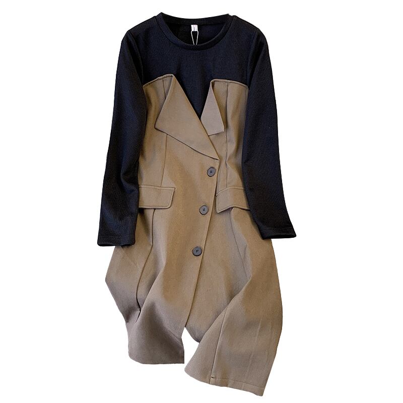 大サイズの婦人服 2022 秋の新しいファットシスターステッチファッションフェイクツーピース気質薄いスーツドレス 大きめサイズ オータム 秋物 8884115326654110