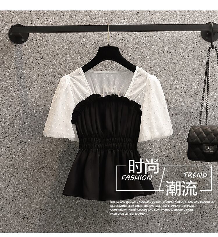 大きいサイズの婦人服 2022 トレンディな女性の夏の新しいファットシスター気質フレンチニッチシックなウエスト半袖シャツトップ 大きめサイズ サマー 夏物 8884170584846660