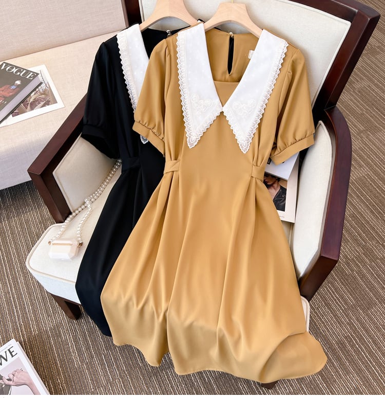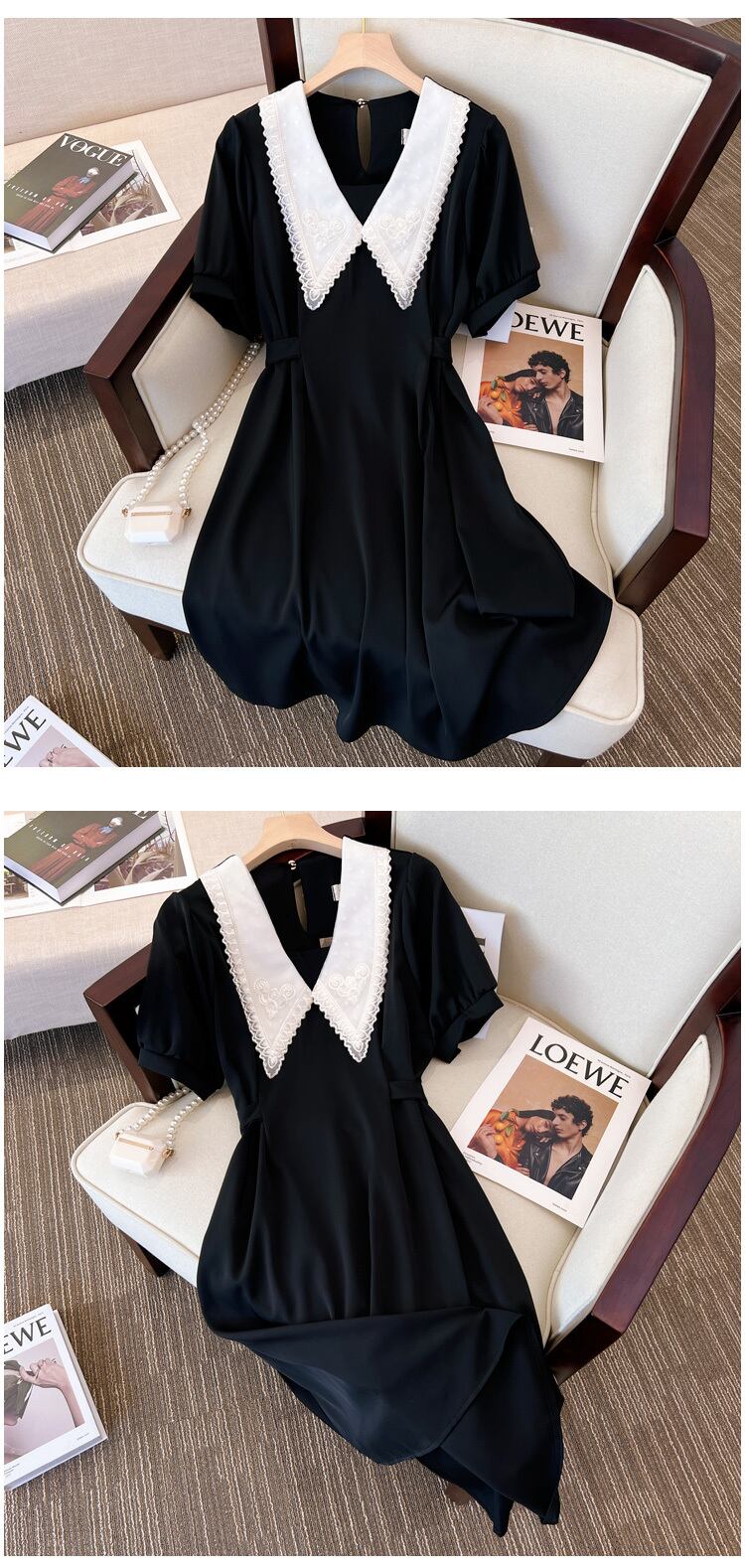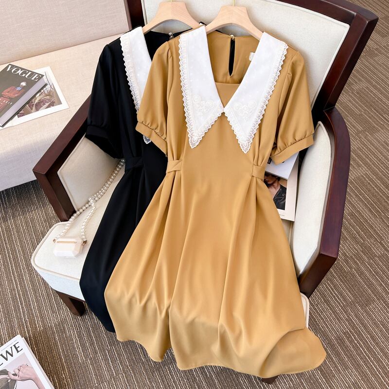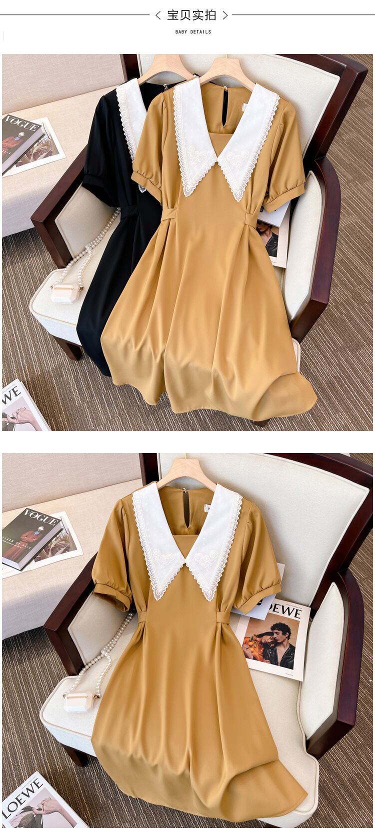 大きいサイズの婦人服 2022 ファットシスター夏の新しい半袖ウエスト A-word スリム人形の襟のレトロなドレス 大きめサイズ サマー 夏物 888411302416389