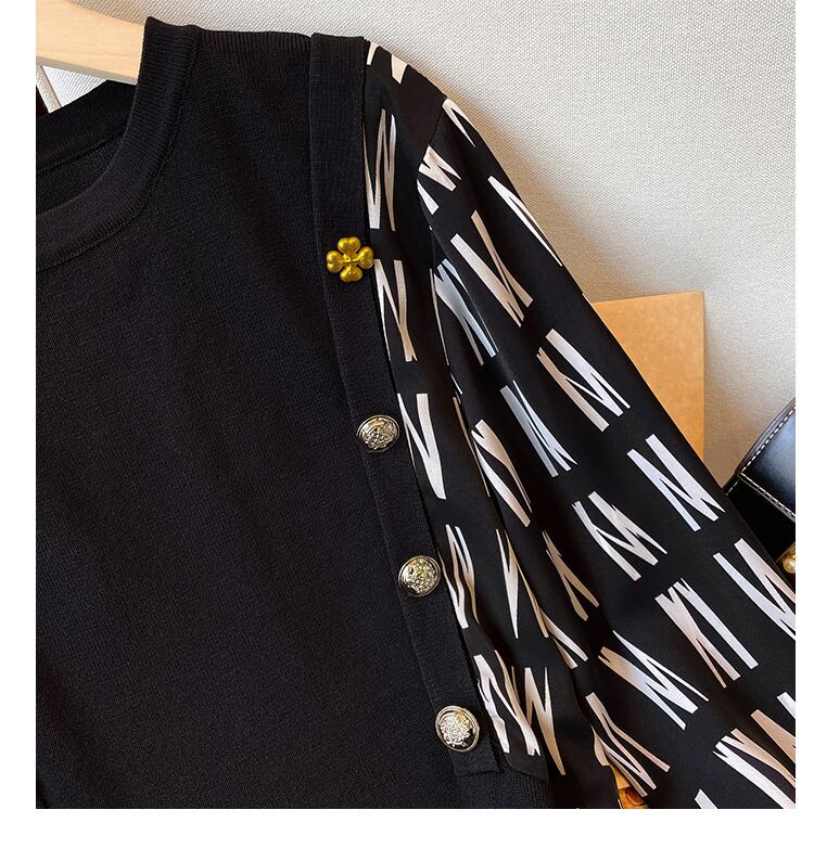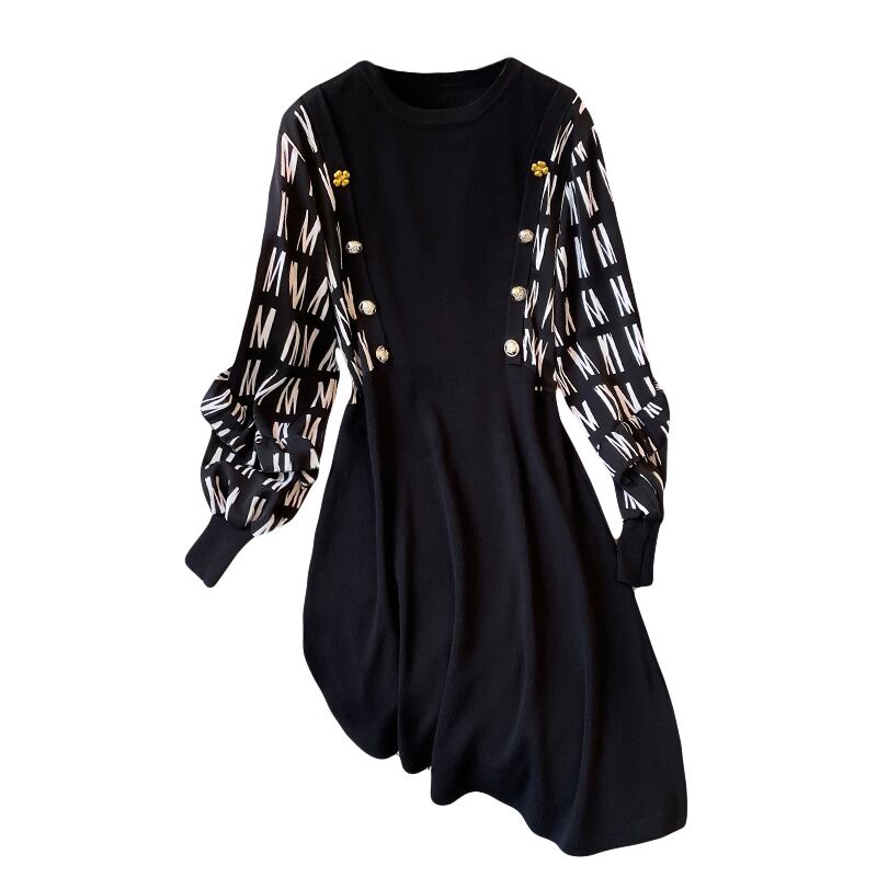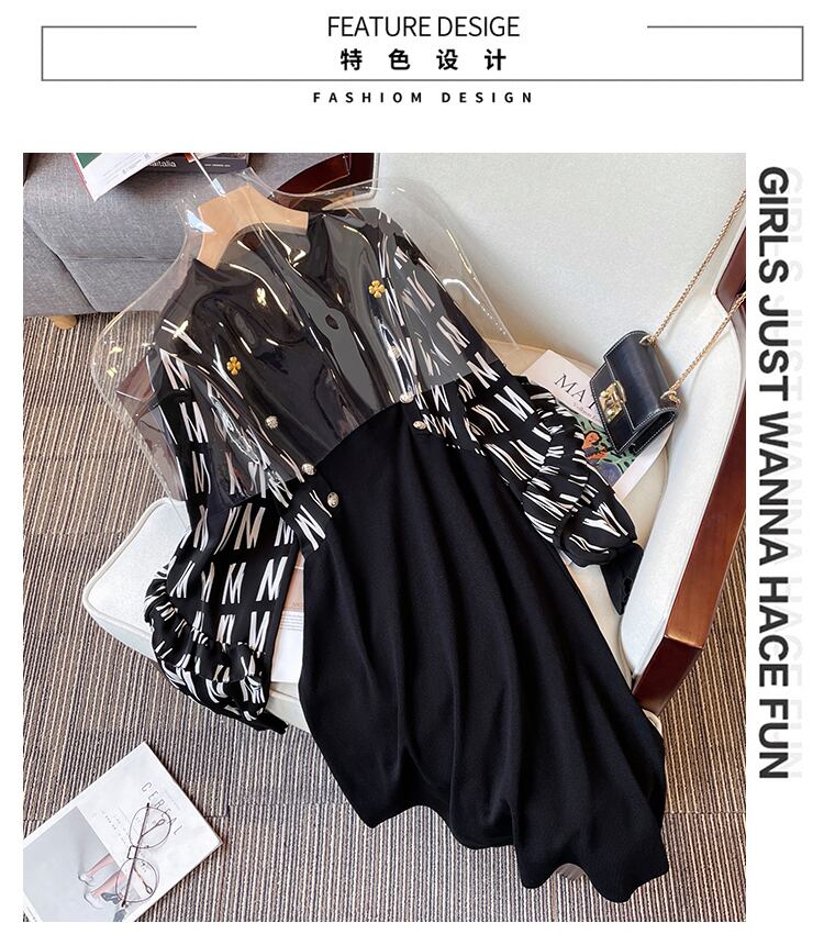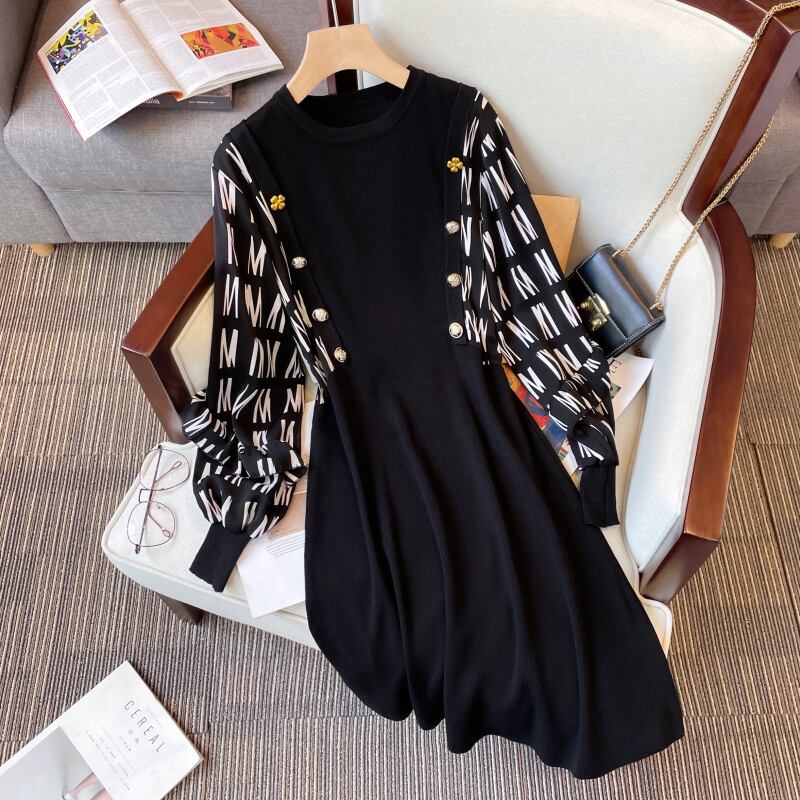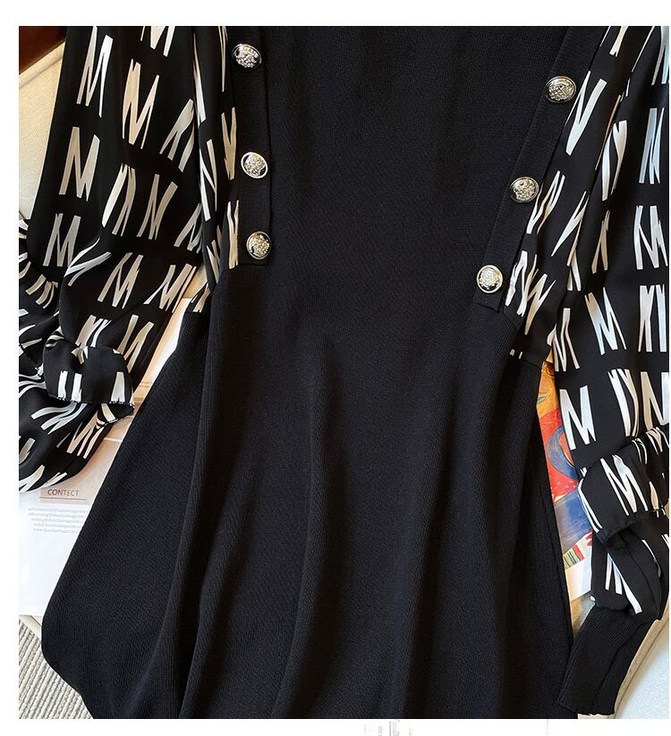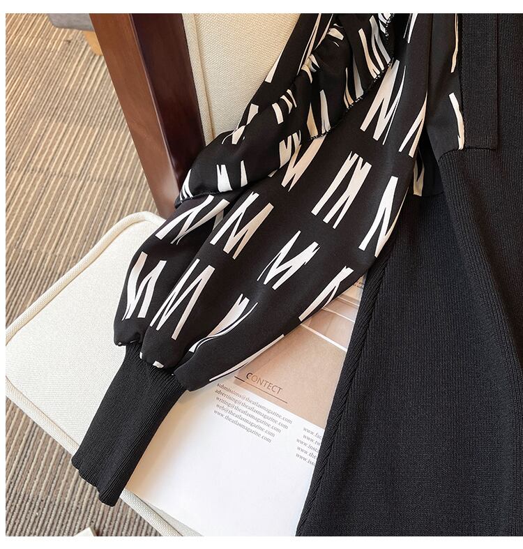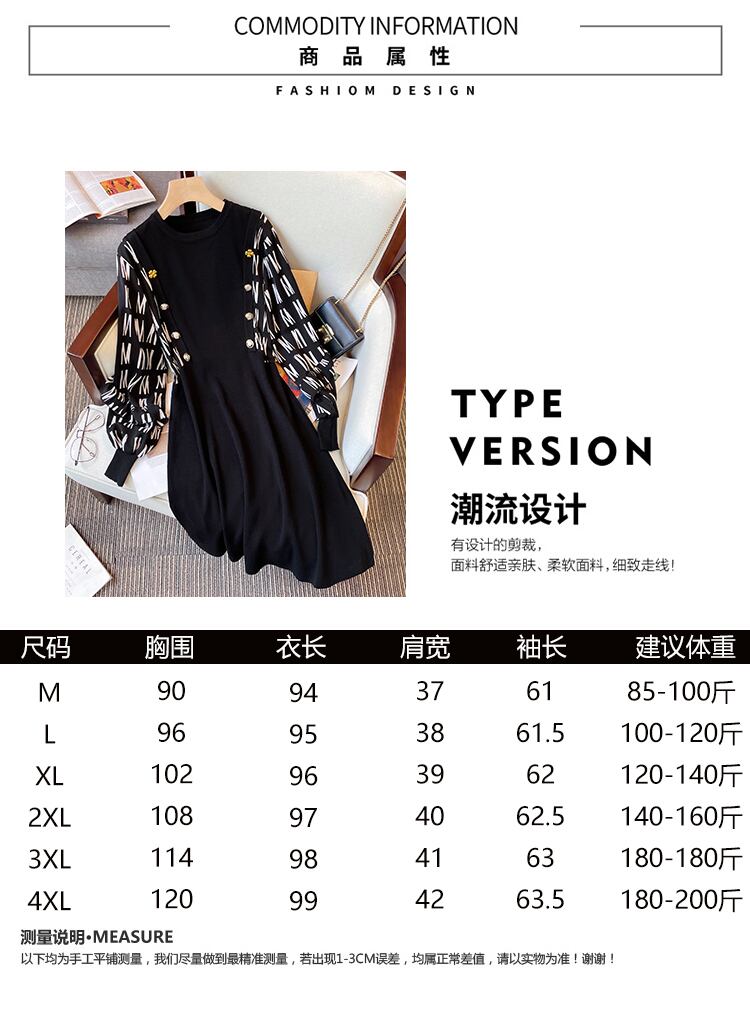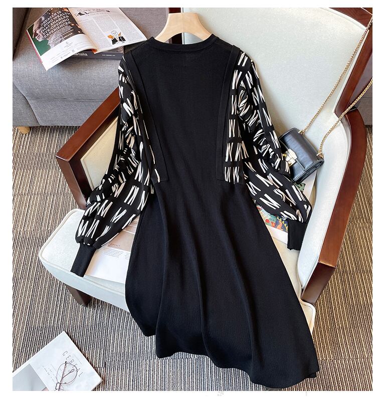 大きいサイズの婦人服 2022 太った姉妹秋の新しい薄いと年齢を減らすシフォン ステッチ フェイク ツーピース ニット ドレス 大きめサイズ オータム 秋物 8884123798275061