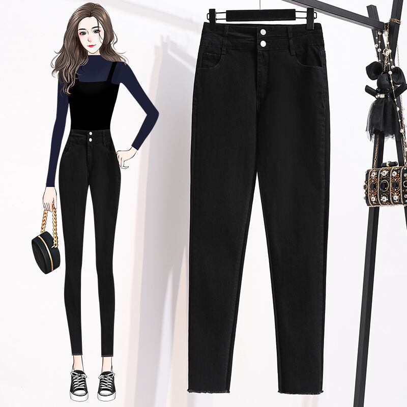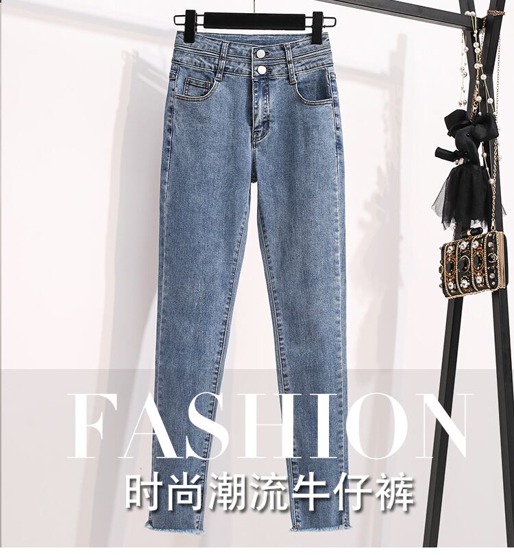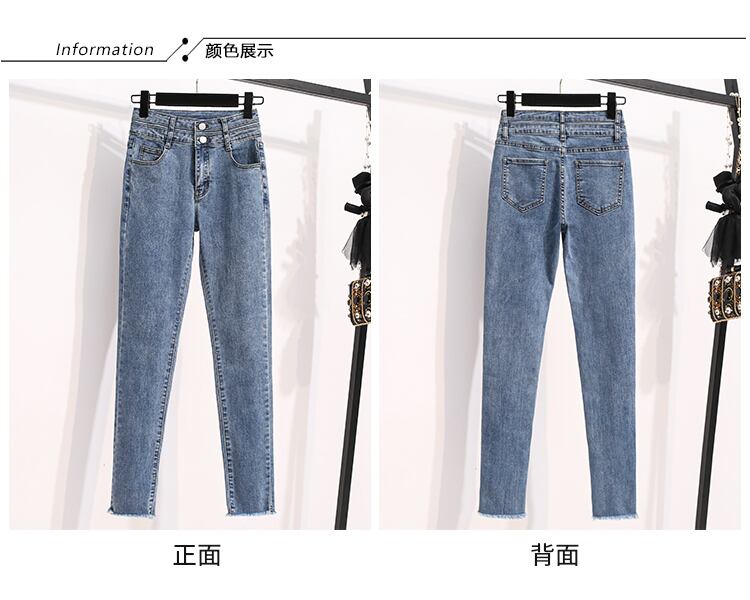 大サイズの婦人服 2022 ファットシスター秋新スリムペンシルパンツ弾性ハイウエストスキニーパンツジーンズ女性 ハイウェスト エラスティック 伸縮 大きめサイズ オータム 秋物 8884175482928018