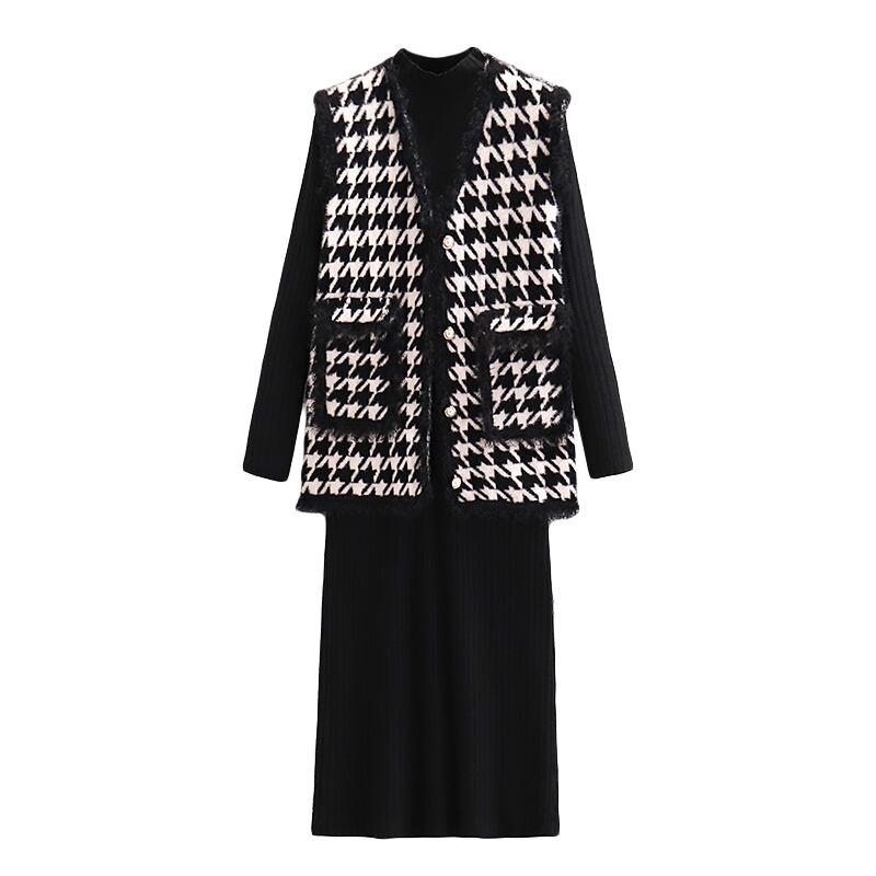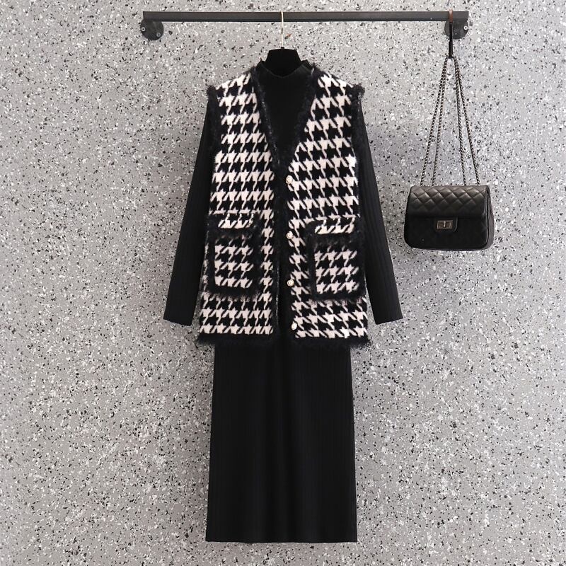 大きいサイズの婦人服2022ファットシスター秋の新作カーディガンベスト洋風ニットベストドレス2点セット 大きめサイズ オータム 秋物 888412004642383