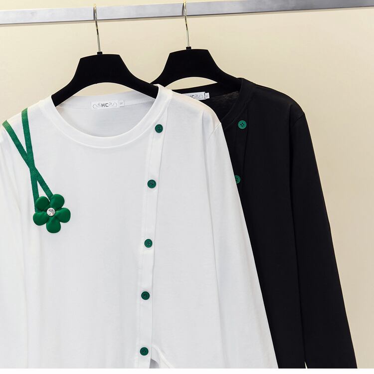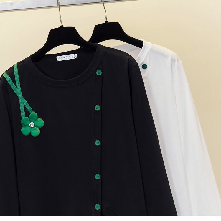 大きいサイズの婦人服2022秋の新しいファットシスターファッションとシックなデザインの長袖の腹を覆うフレンチカジュアルTシャツ ロング 大きめサイズ オータム 秋物 8884145775833216