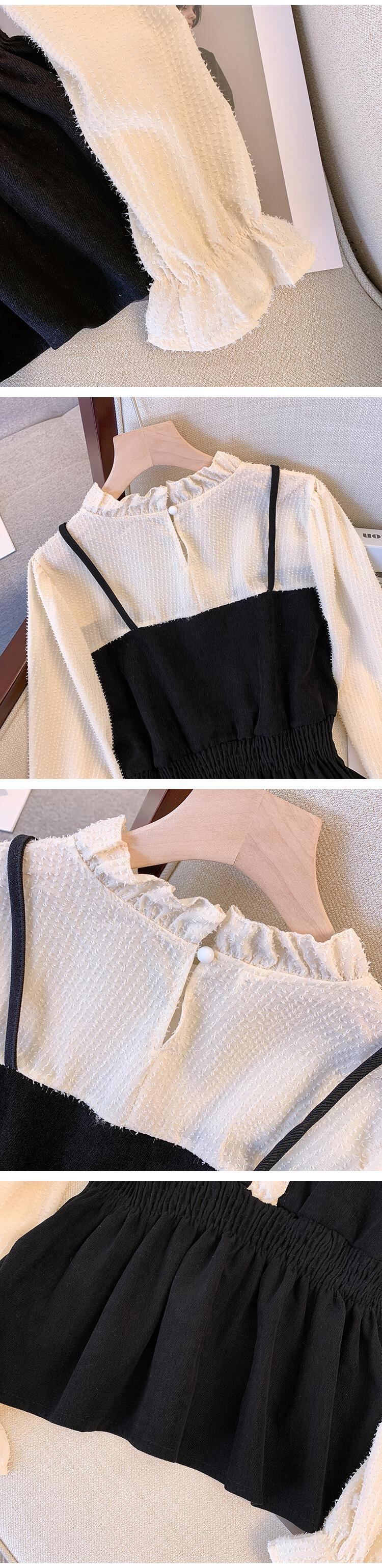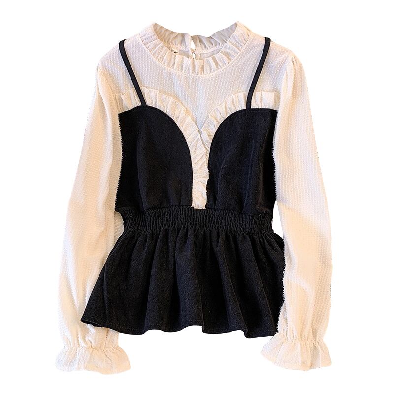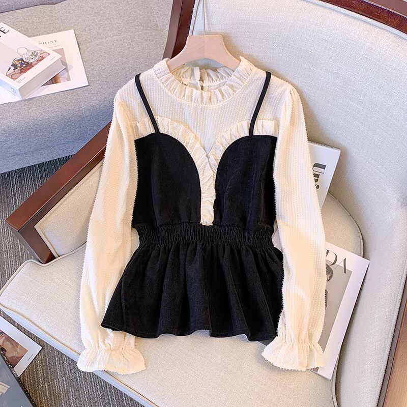 大きいサイズの婦人服 2022 秋の新しいファットシスターフェイクツーピーススリングステッチデザインセンスウエストと薄いトップの女性 大きめサイズ オータム 秋物 8884158462396732