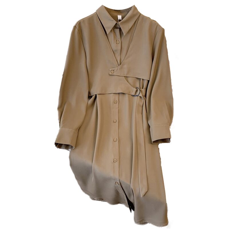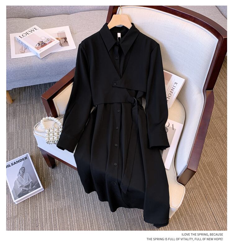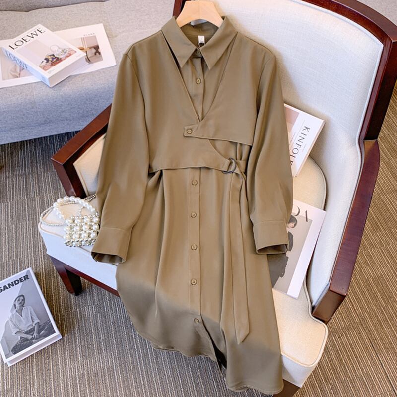 大きいサイズの婦人服 2022 秋の新しいファットシスターカジュアル薄いファッション気質ゆったり肉カバー無地ドレス 大きめサイズ オータム 秋物 ソリッドカラー 8884133531223259