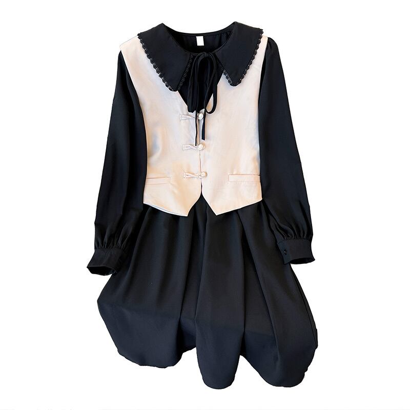 大きいサイズの婦人服 2022 ファット シスター秋の新しい西洋スタイルの年齢を減らすベストを示す薄い人形の襟のドレス ツーピース 大きめサイズ オータム 秋物 8884138361929095