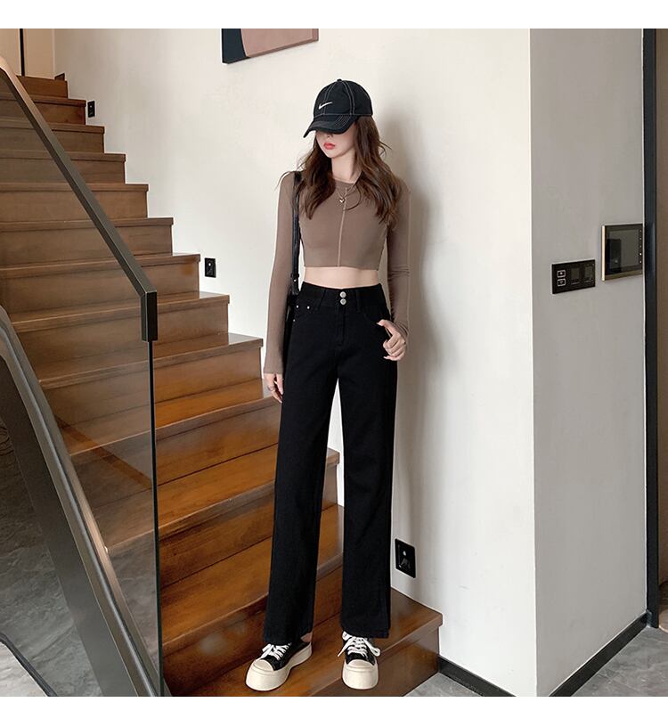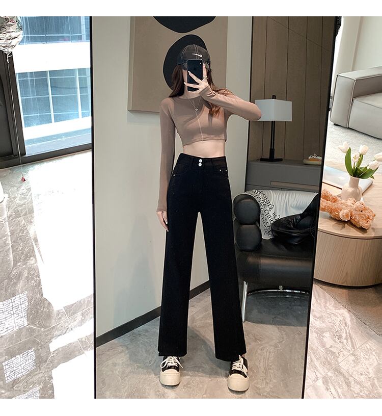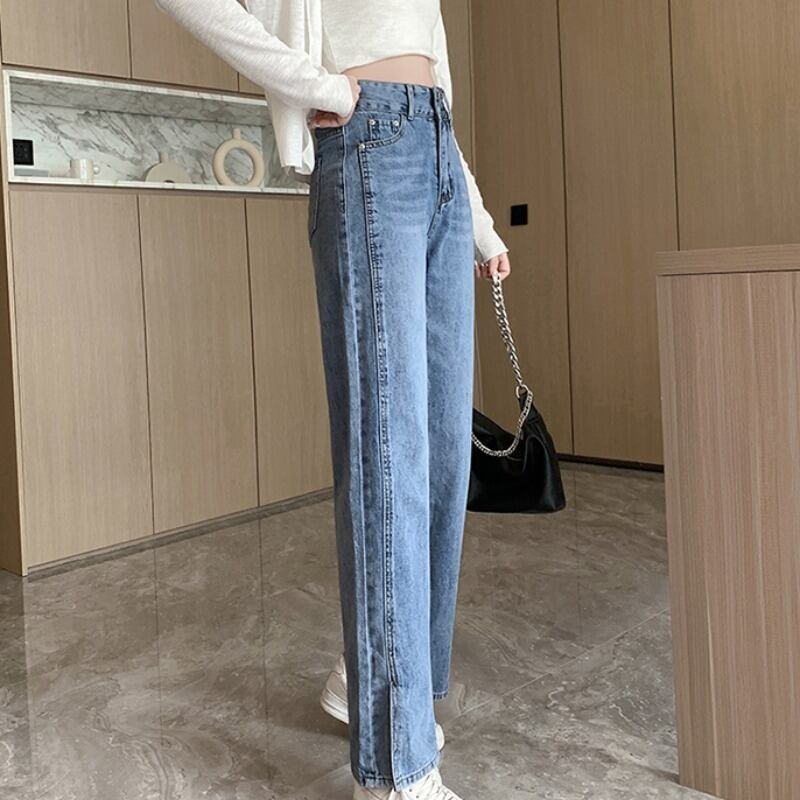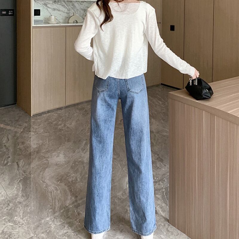 大きいサイズの婦人服2022トレンディな女性の秋の新しいファットシスターファッショナブルな気質オールマッチ薄いハイウエストワイドレッグジーンズ 大きめサイズ オータム 秋物 888415761266621