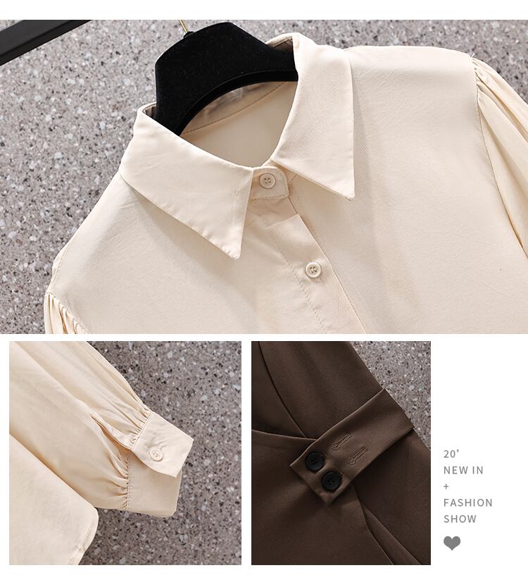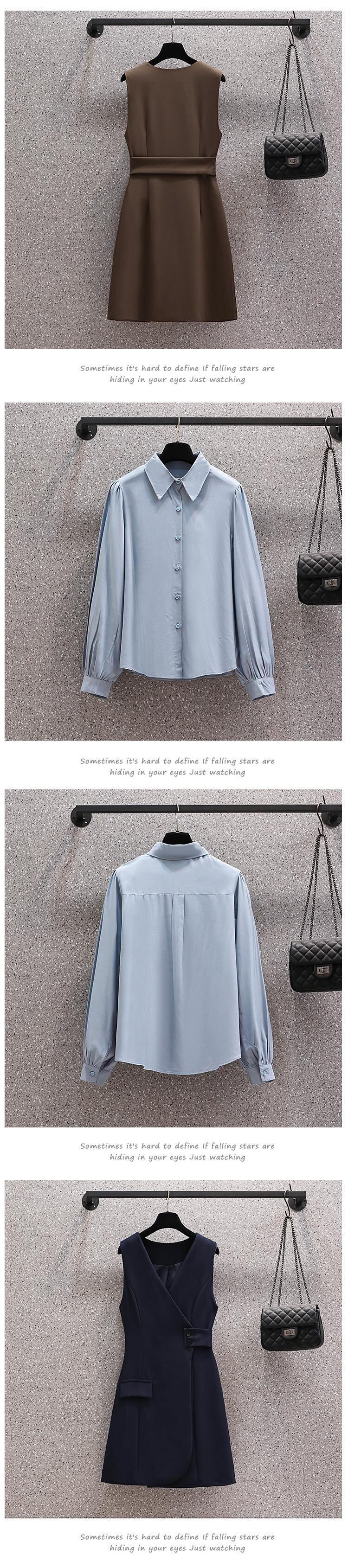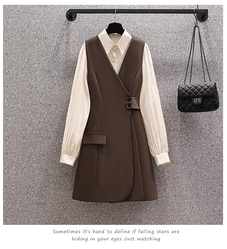 大きいサイズの婦人服 2022 秋の新しいファットシスターファッション年齢削減ベストドレスオールマッチシャツツーピーススーツ 大きめサイズ オータム 秋物 8884117999335730