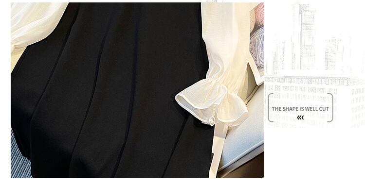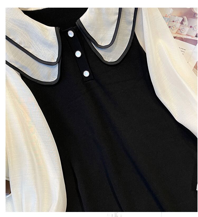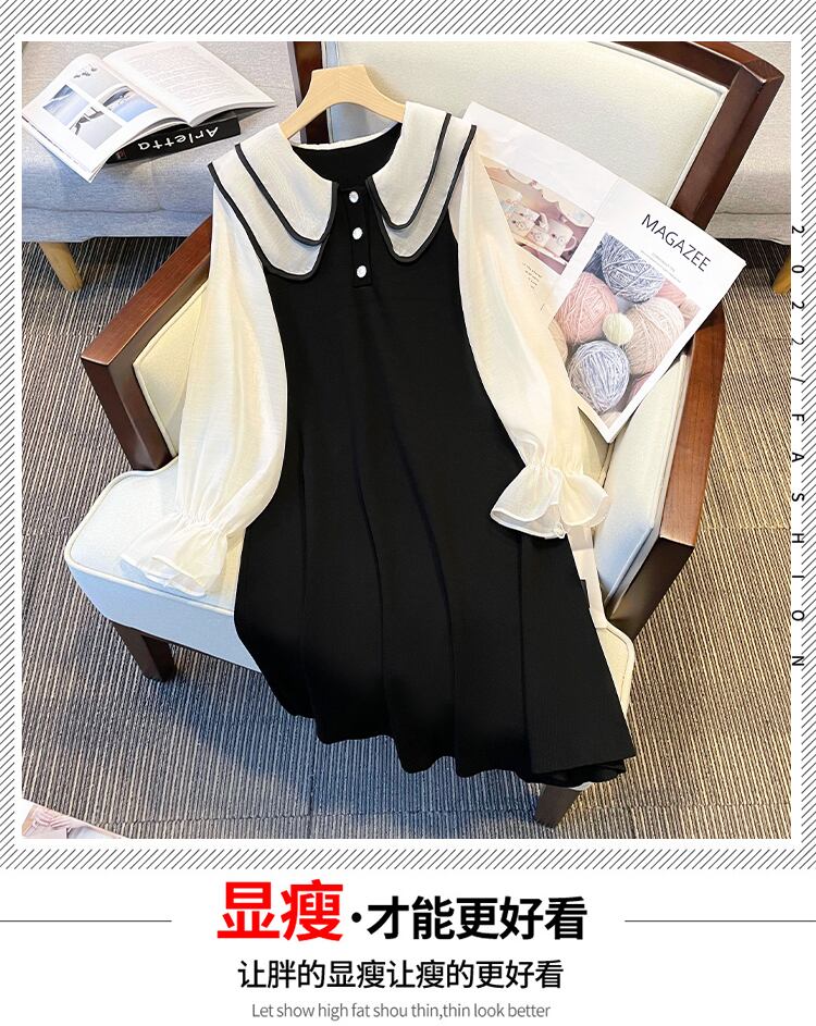 プラスサイズの婦人服 2022 ファットシスター秋の新しい人形の襟シフォンステッチ年齢を減らすスリムなニットドレス 大きめサイズ オータム 秋物 8884133501981516