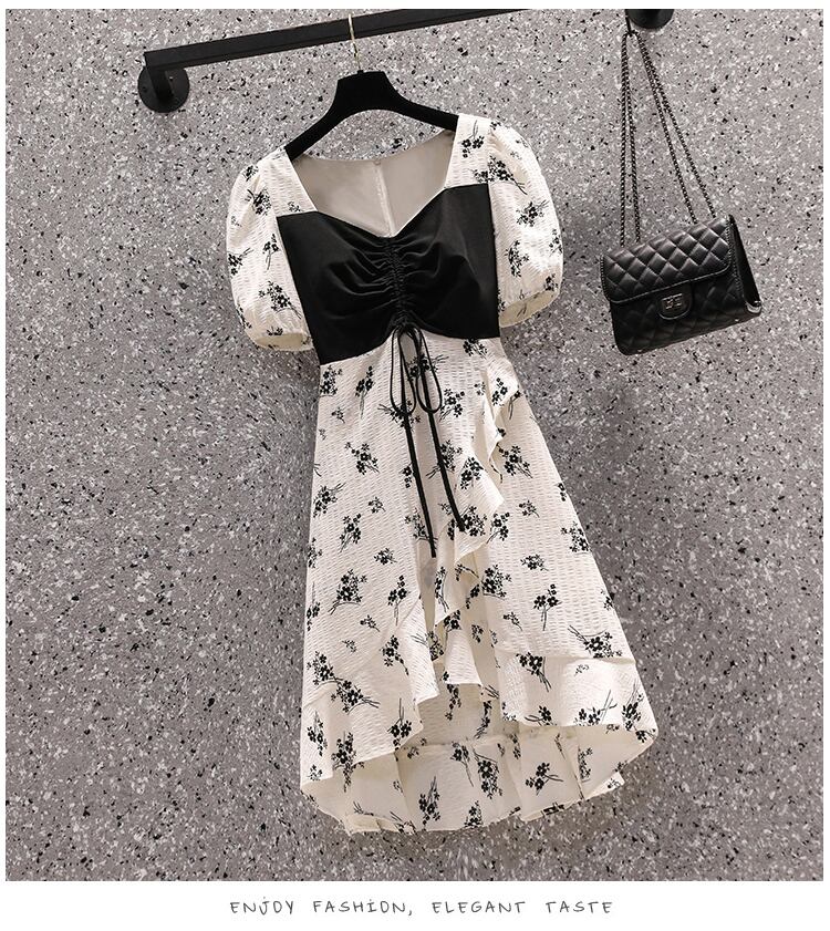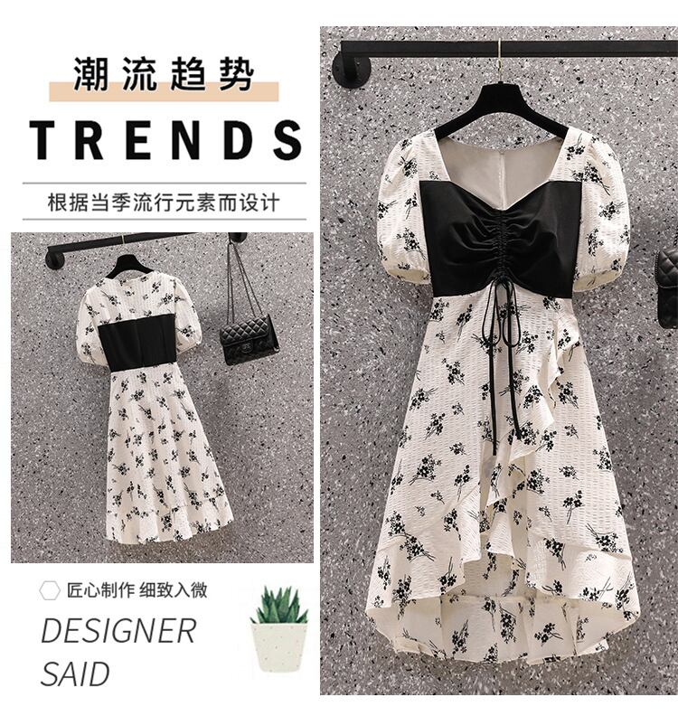 大きいサイズの婦人服 2022 夏の新しいファットシスターデザインセンスファッションステッチフェイクツーピースウエスト痩身ドレス 大きめサイズ サマー 夏物 8884155096075583
