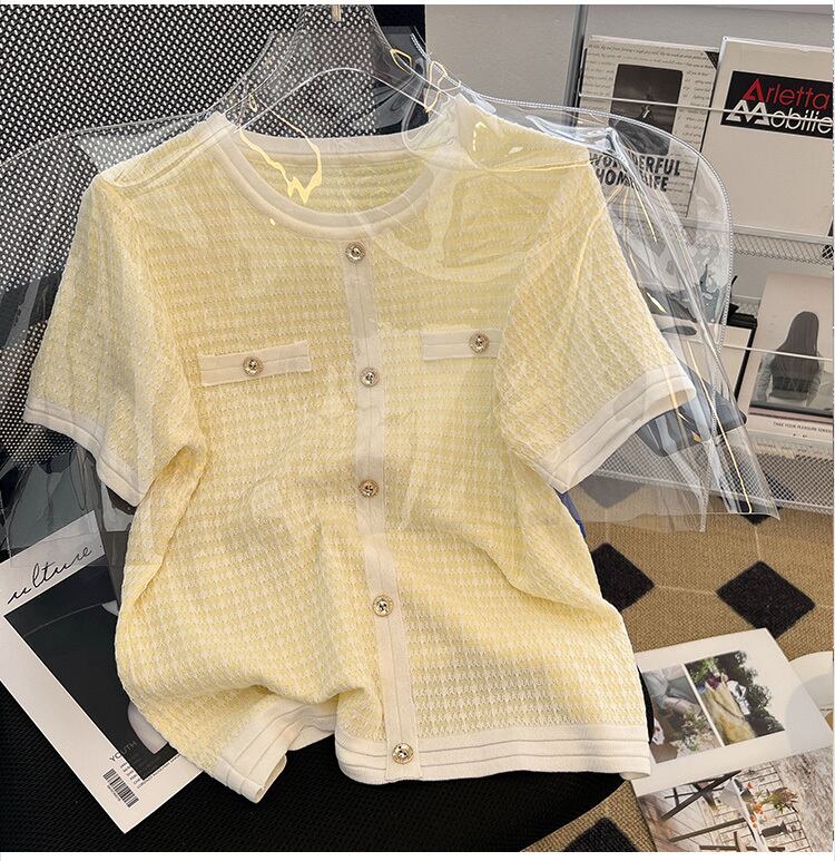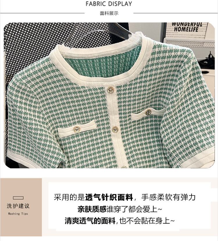 大きいサイズの婦人服 2022 ファットシスター夏の新しいオールマッチラウンドネックプルオーバーニットセーター半袖 tシャツアイスシルクトップ 大きめサイズ サマー 夏物 Oネック 8884136428586942