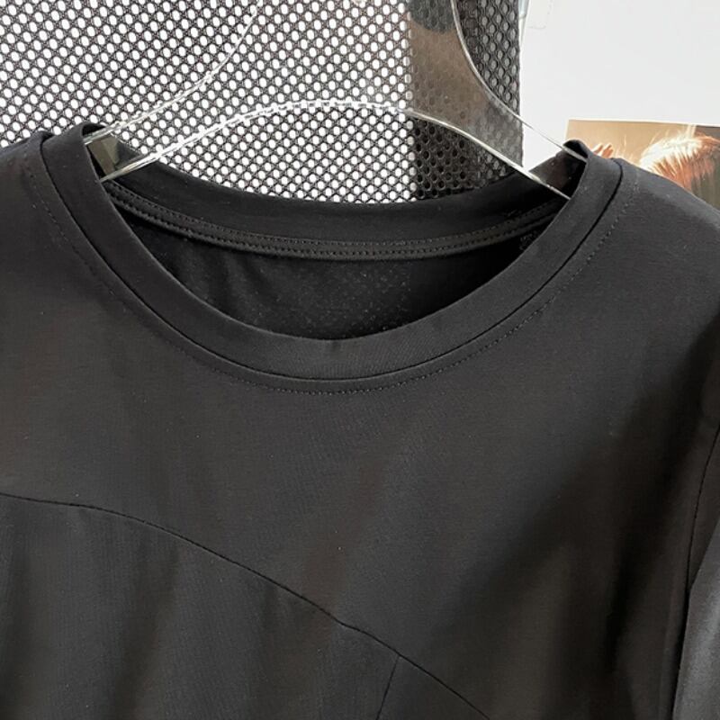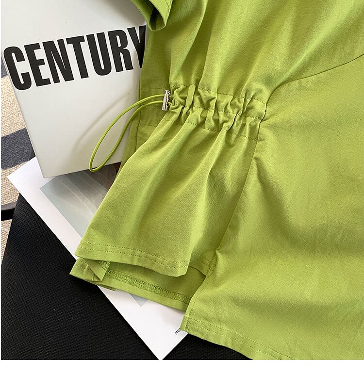 大きいサイズの婦人服 2022 夏の新しいファット シスター スリム ウエスト カジュアルなデザイン センス オールマッチ プリーツ ベリー カバー Tシャツ 大きめサイズ サマー 夏物 8884173667633590