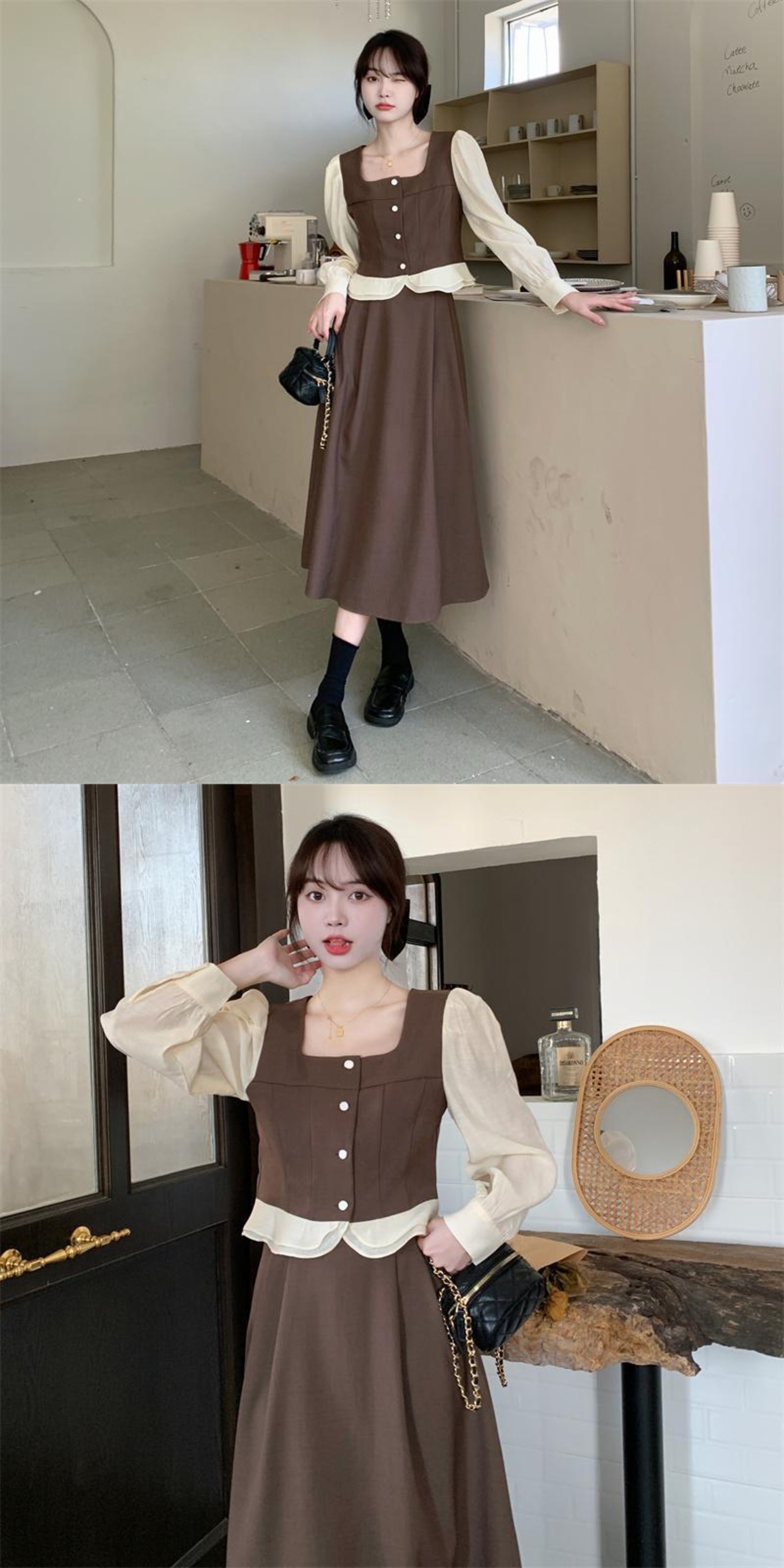 色:シングルブラウントップ,シングルブラウンスカート,シングルブラックトップ,シングルブラックスカート